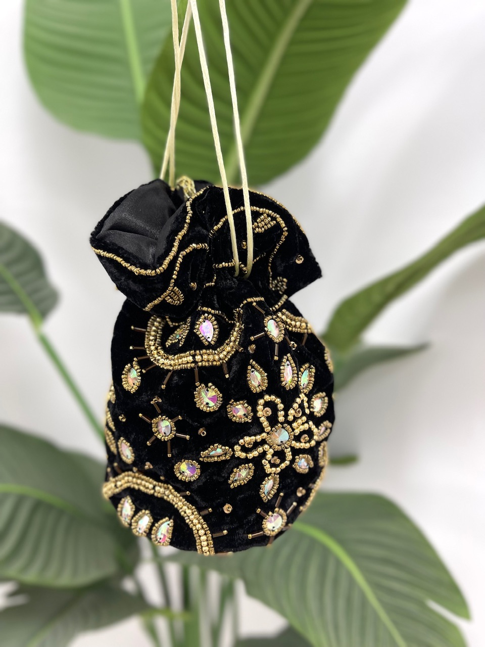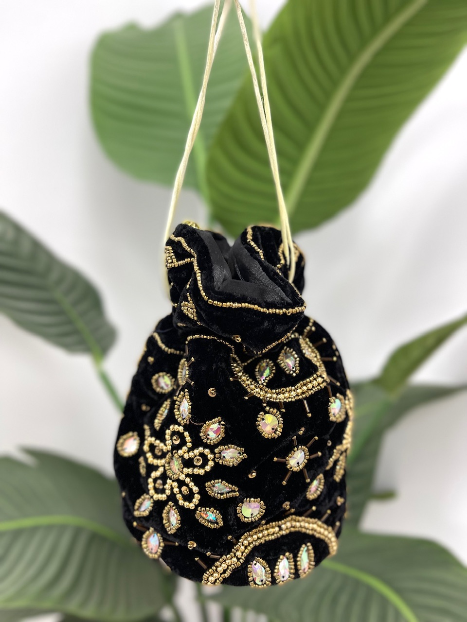 BOMBONERA VELVET NEGRO Incluye asa larga dorada.