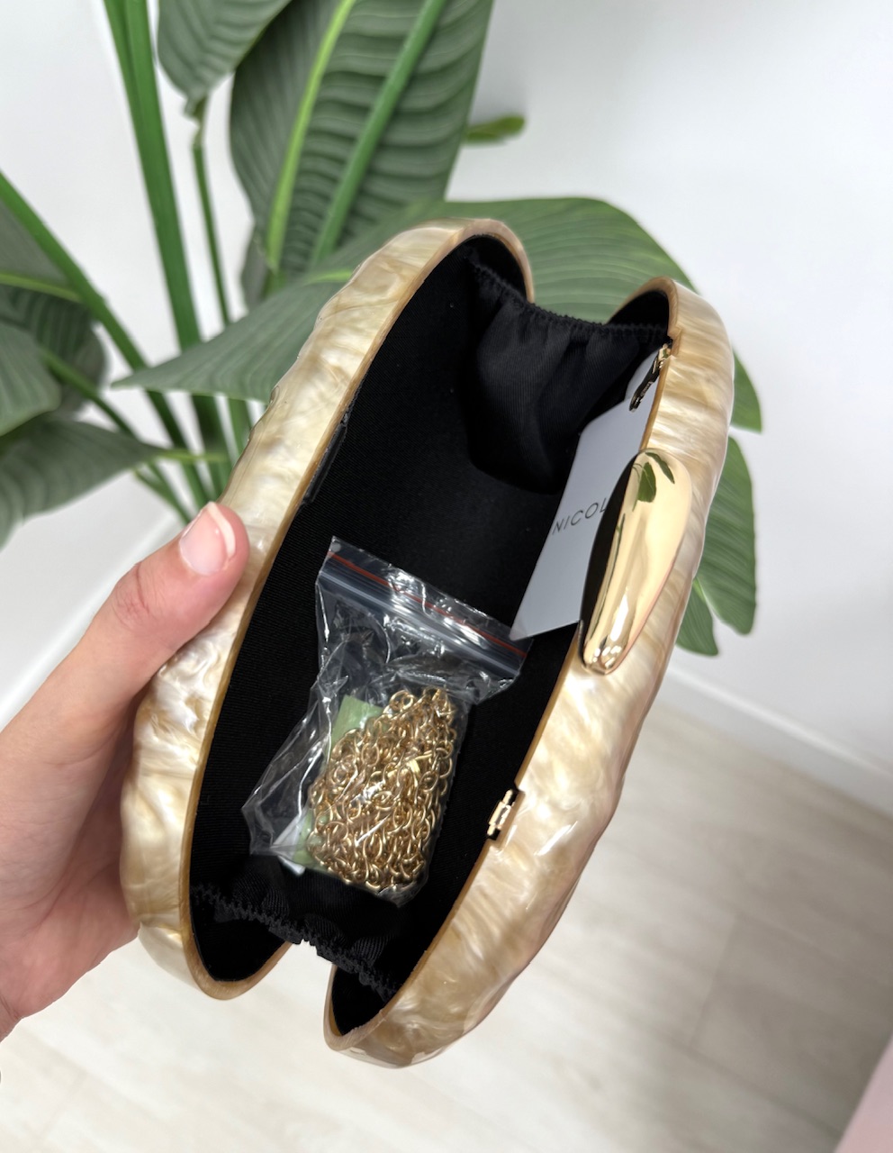 CLUTCH CAREL incluye cadenita larga dorada.