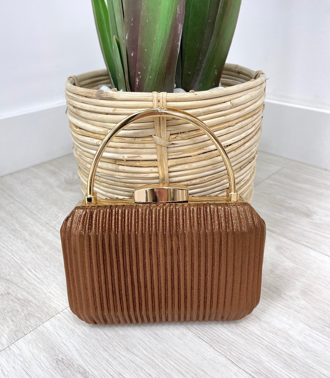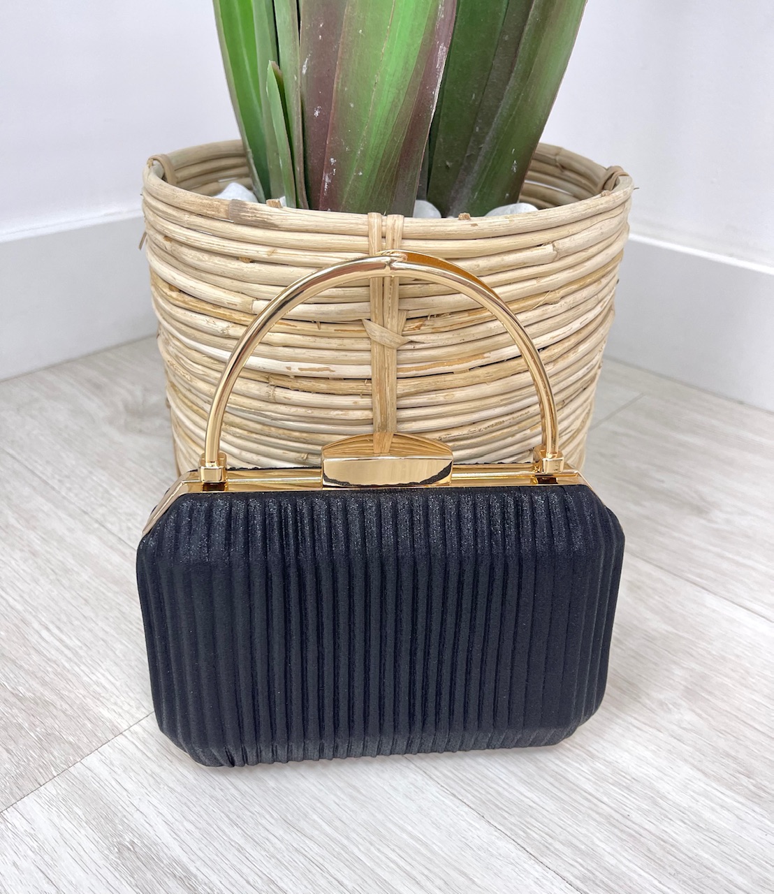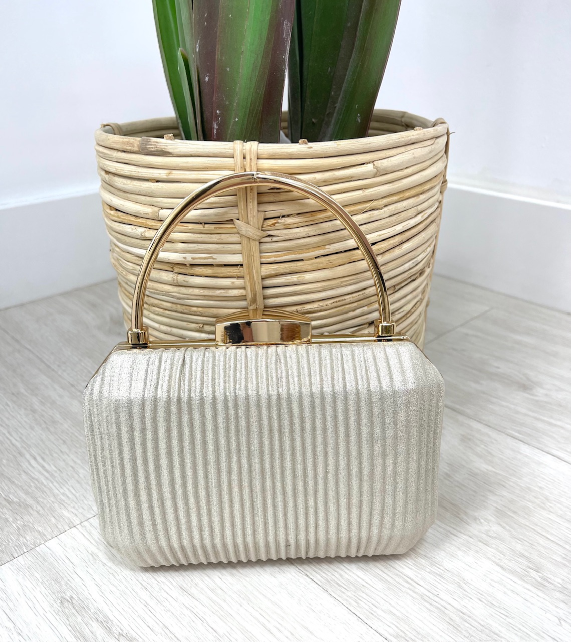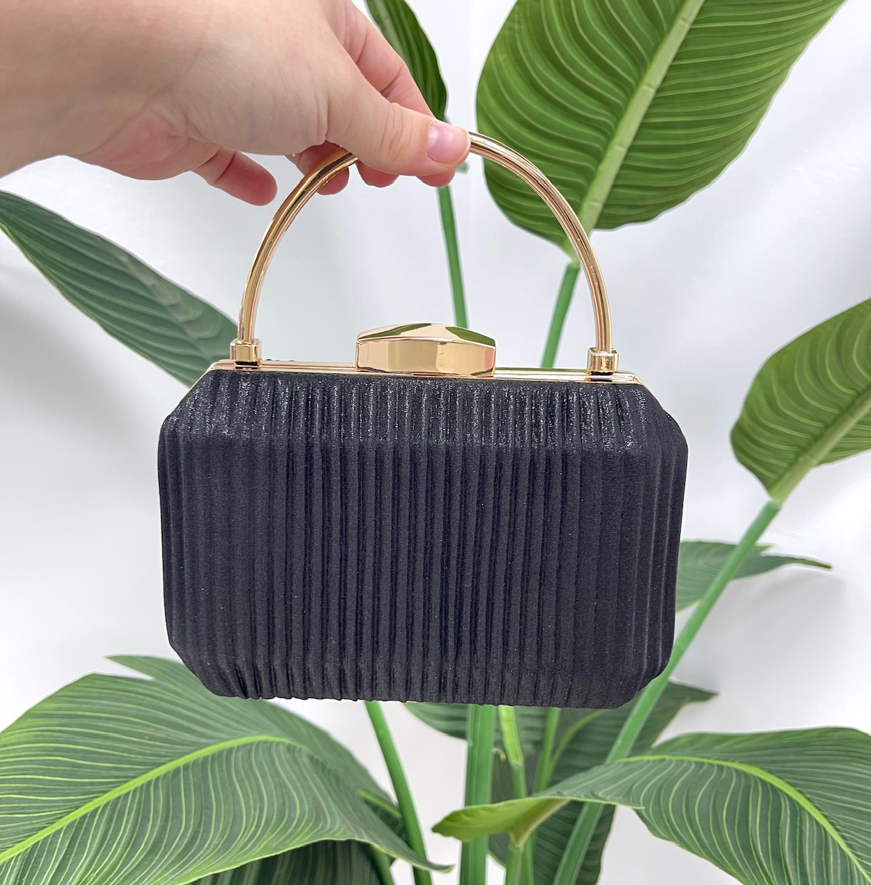 CLUTCH KAIA BRILLO incluye asa larga para colgar.