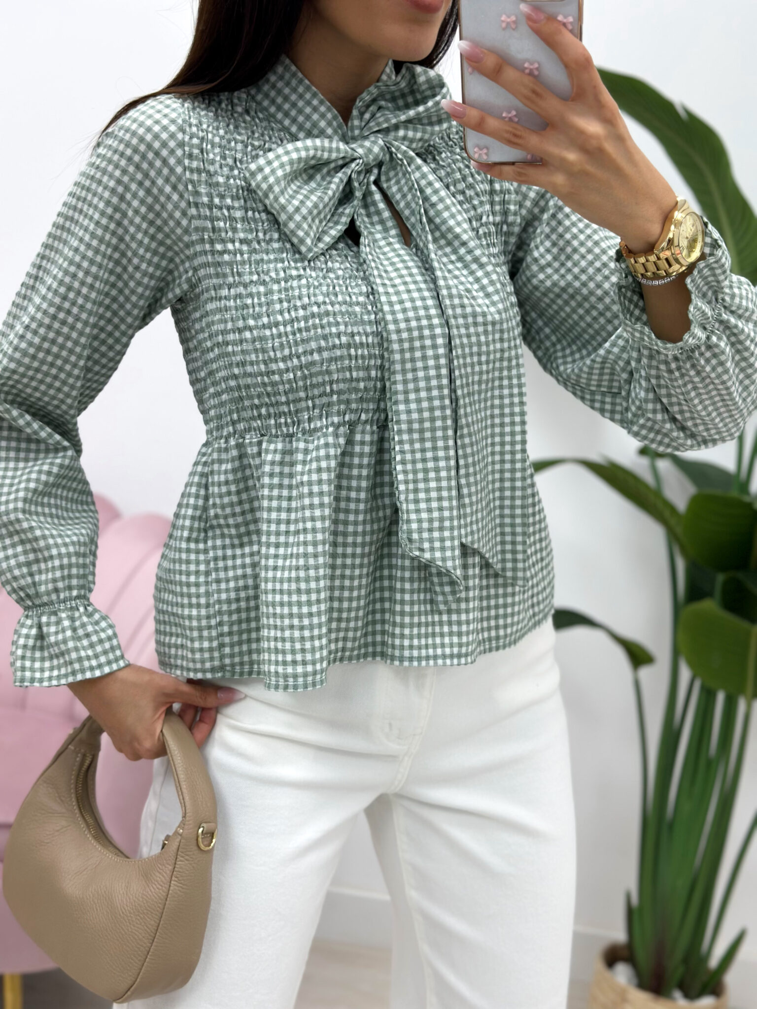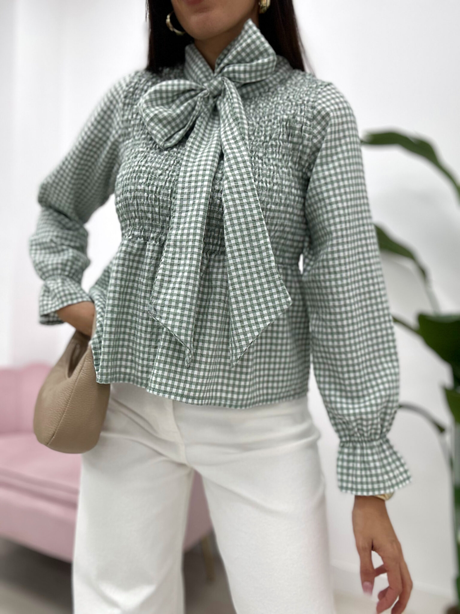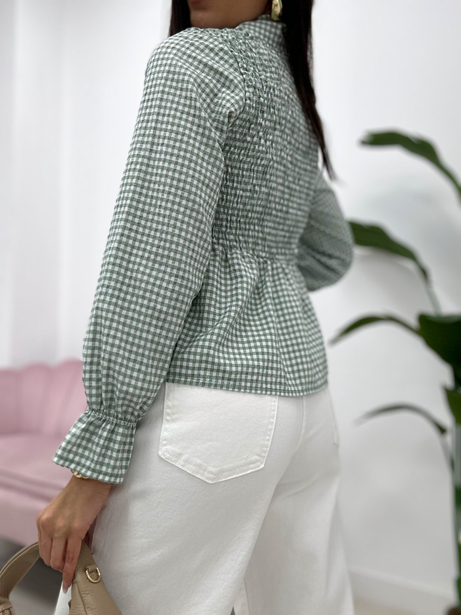 BLUSA FRUNCE LAZADA VICHY VERDE KAKI