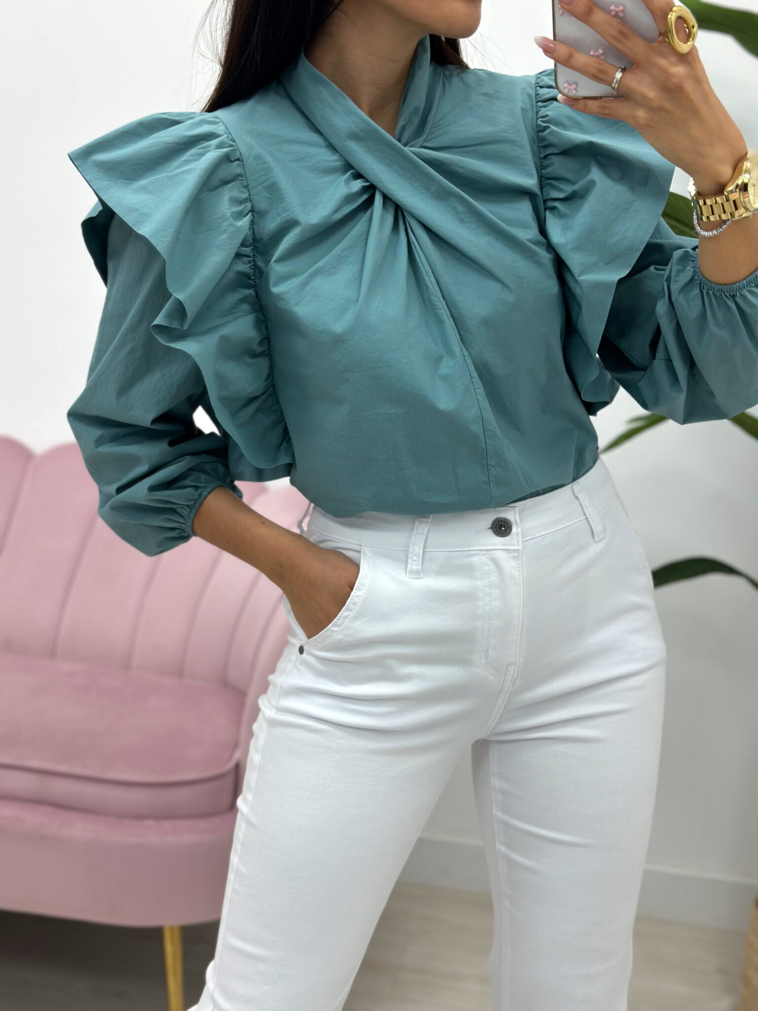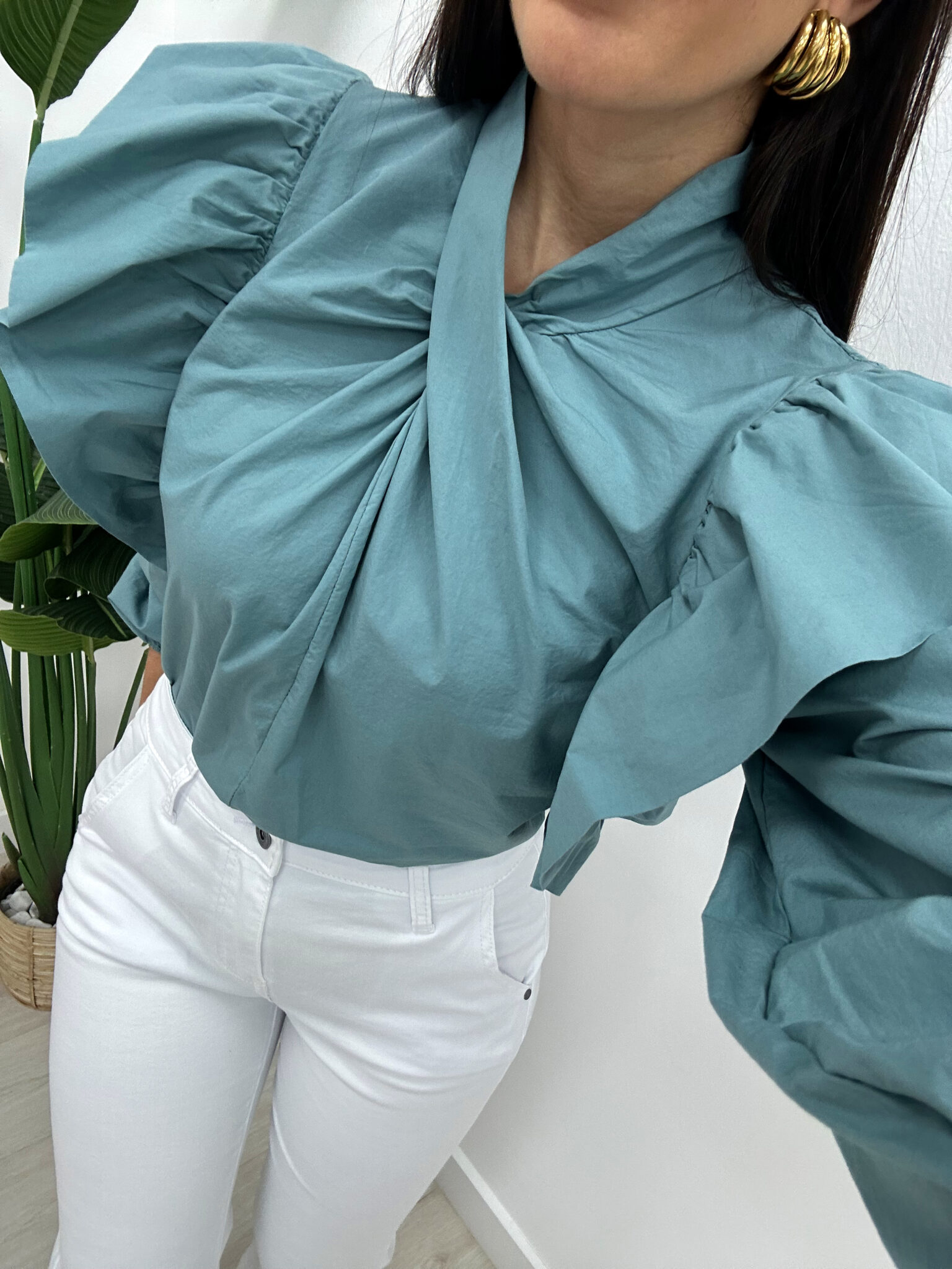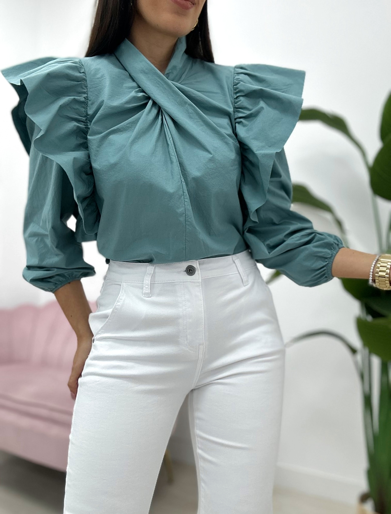 BLUSA FRUNCE LAZADA VICHY BEIGE
