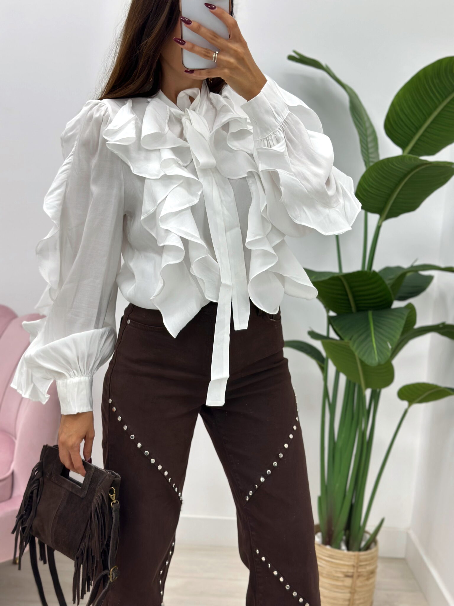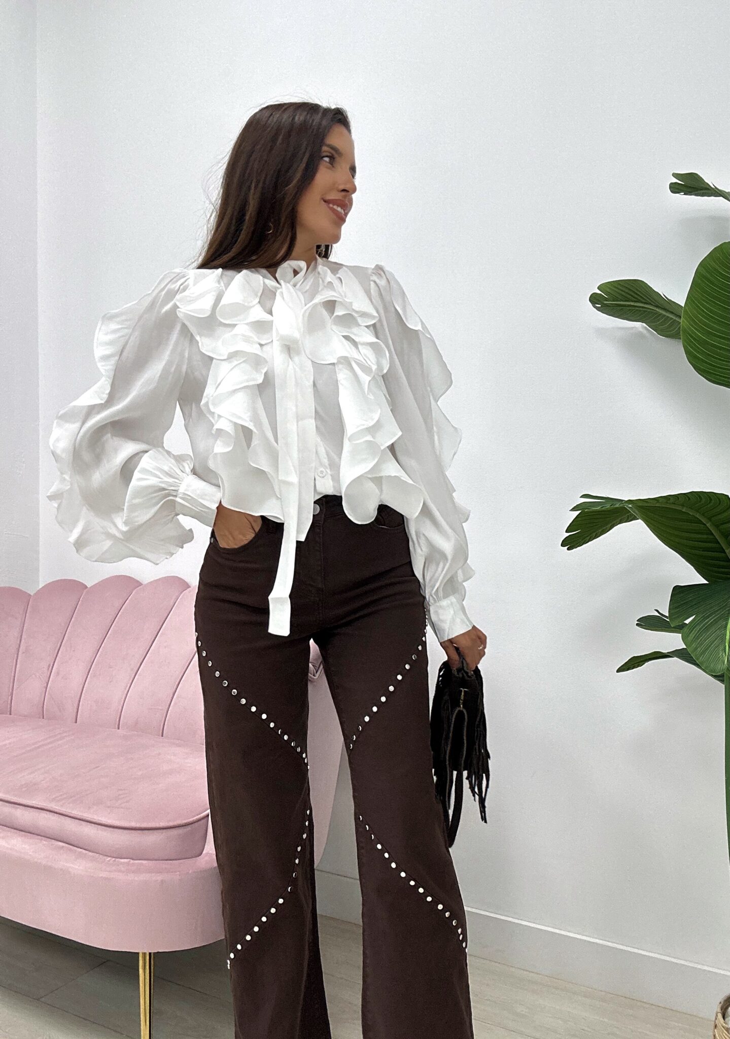 BLUSA FRUNCES MARRÓN
