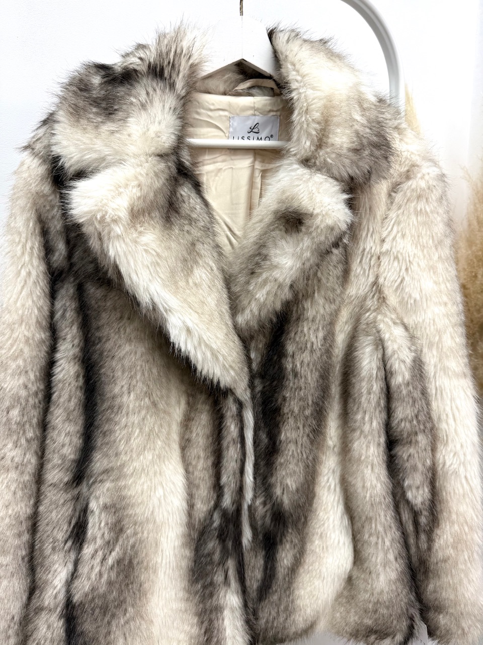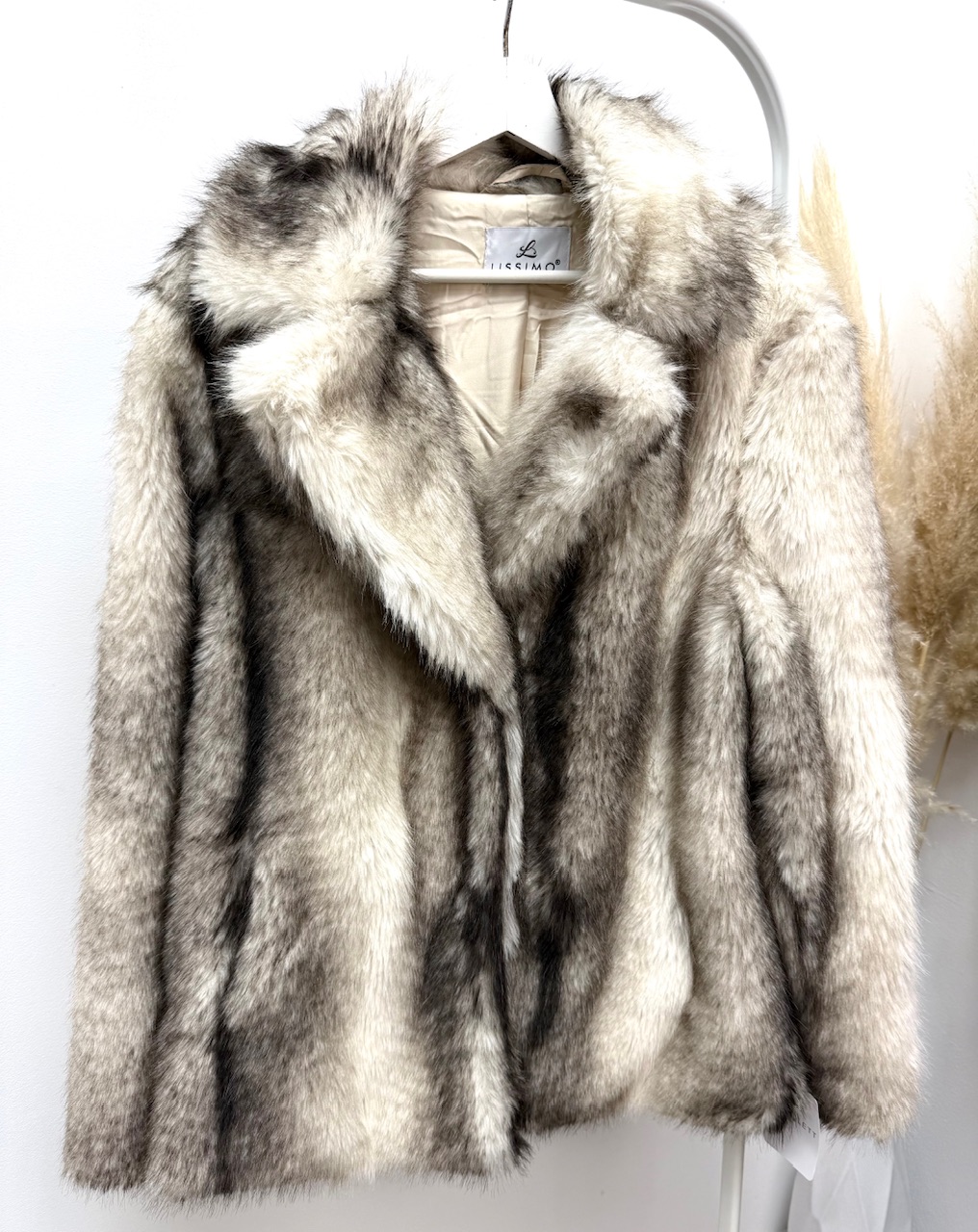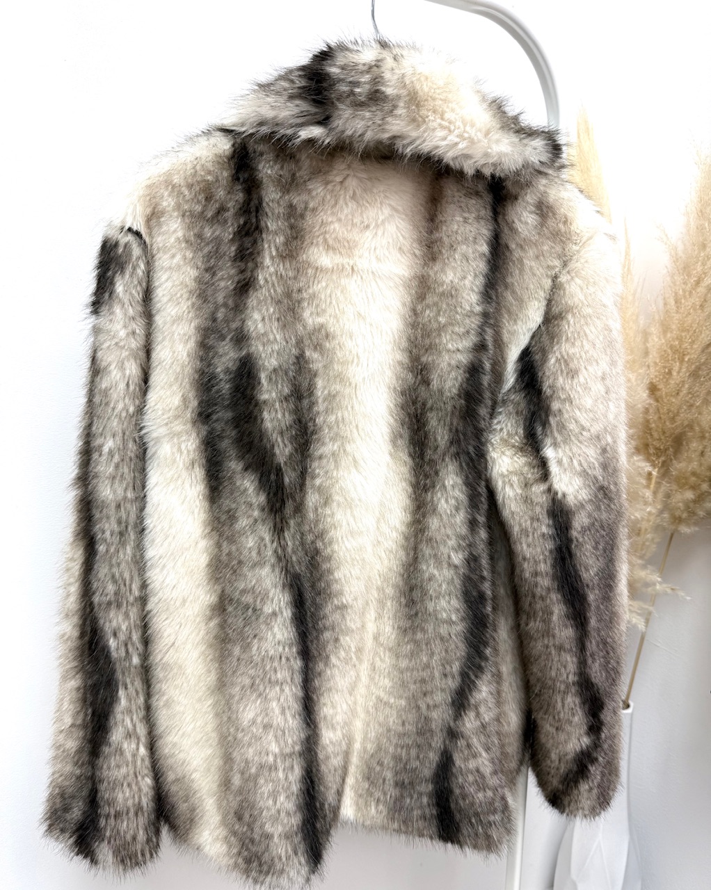 ABRIGO DE PELO BEIGE Y NEGRO Talla única.