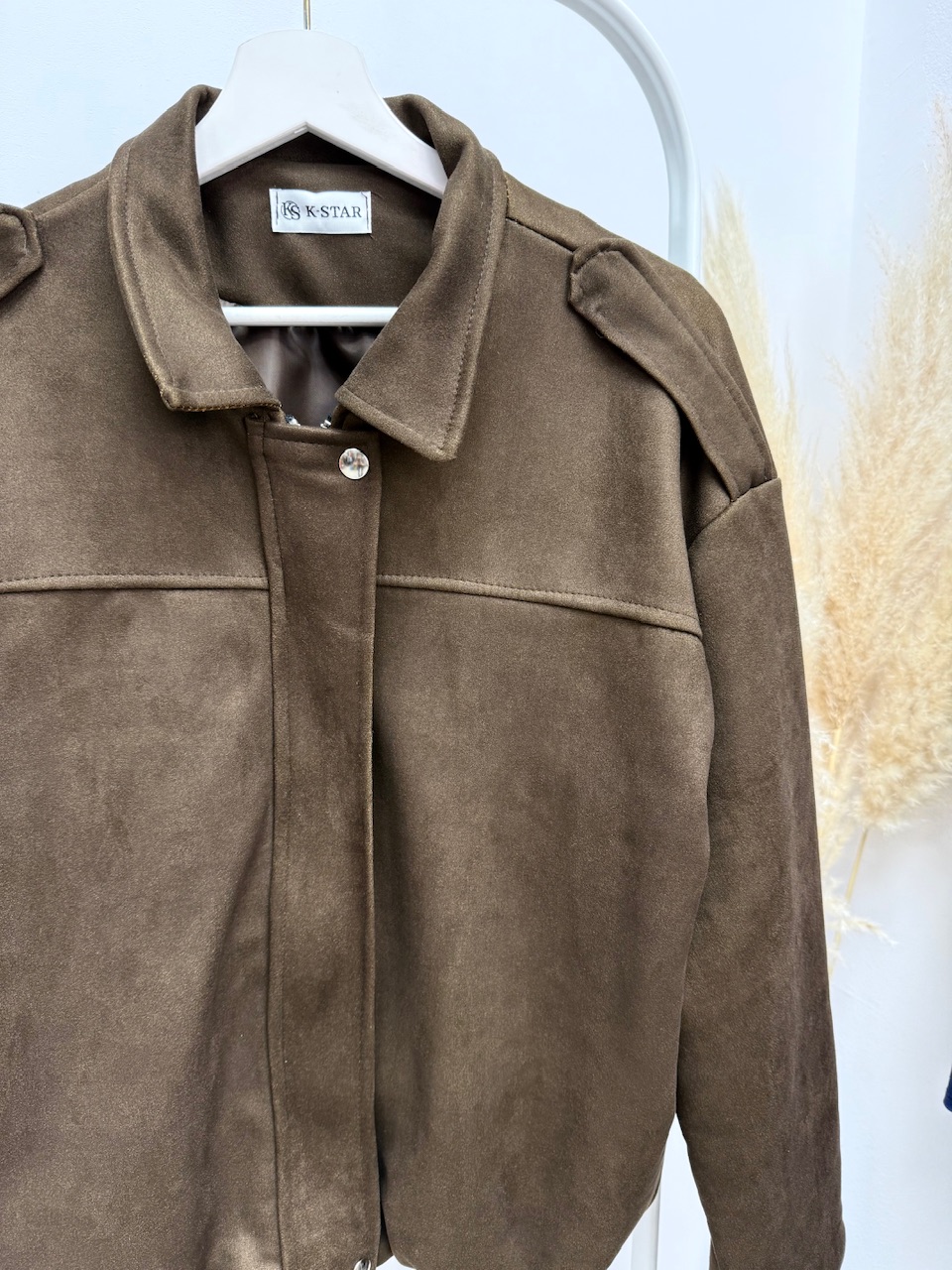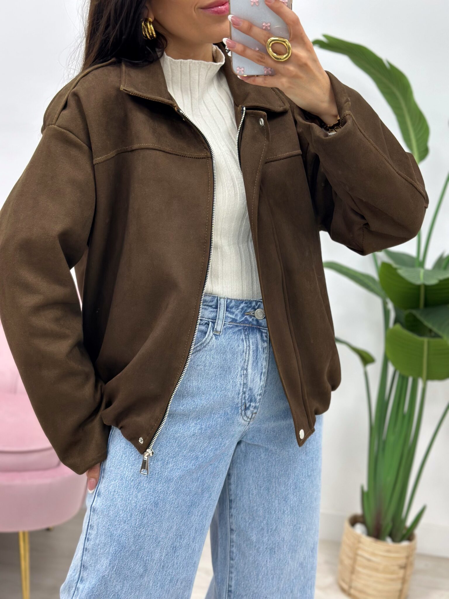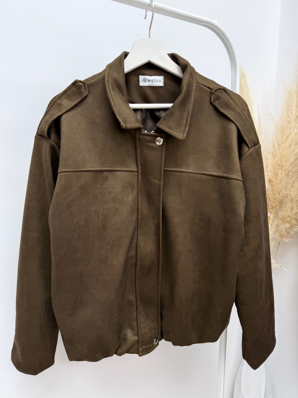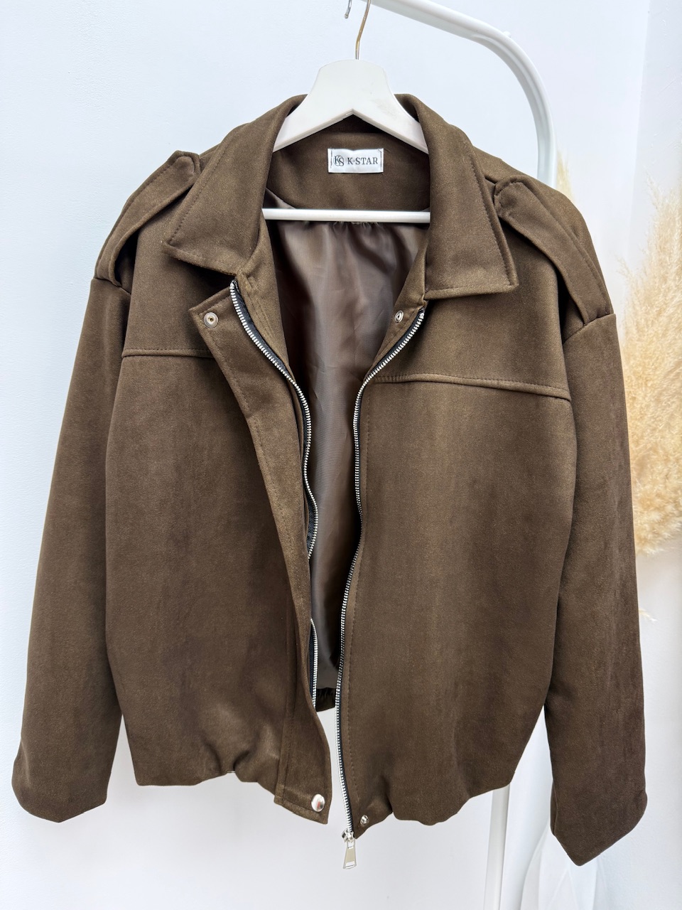 CHAQUETA BOMBER ZURI Talla única, estilo oversize, tejido de ante.