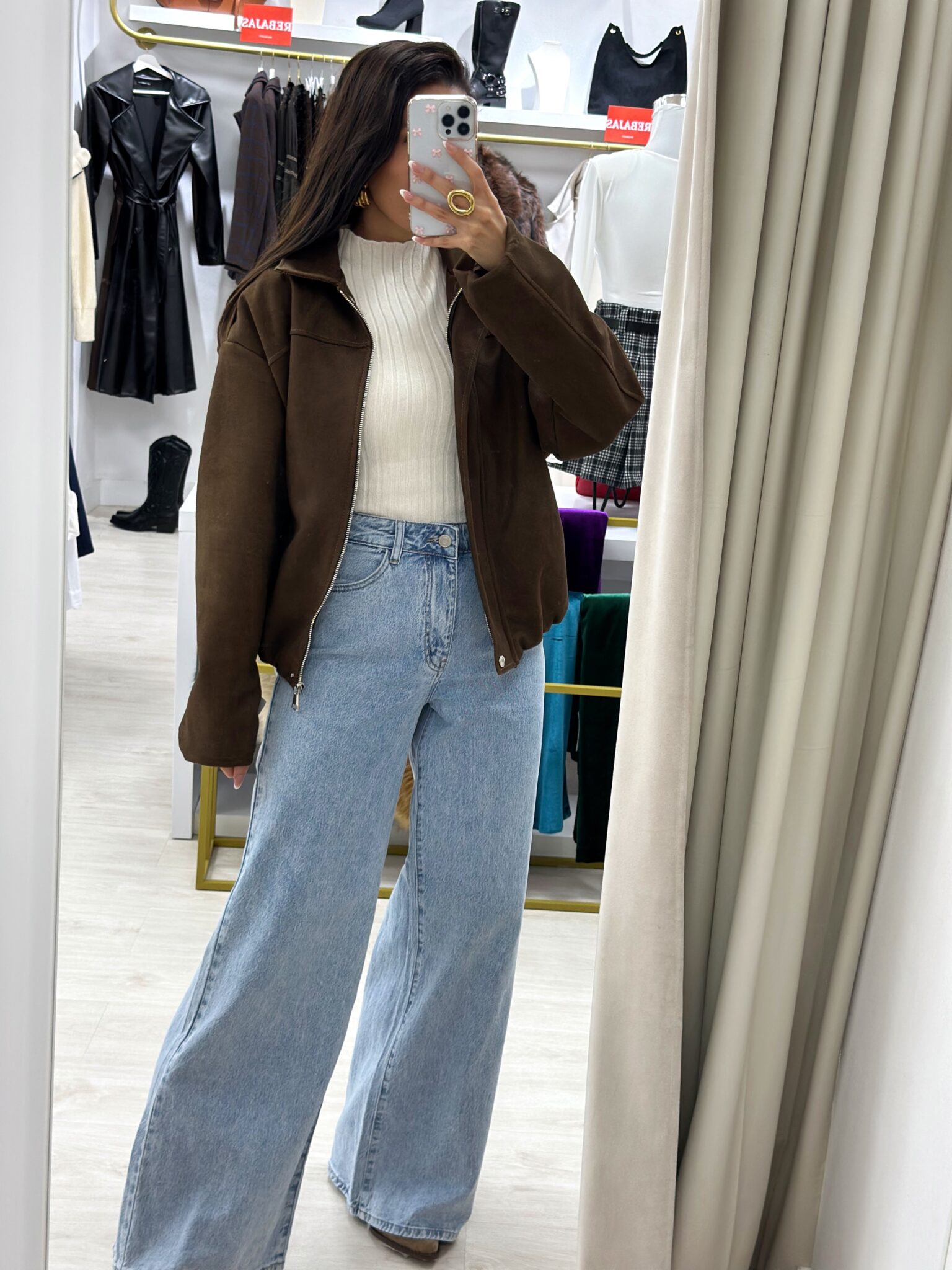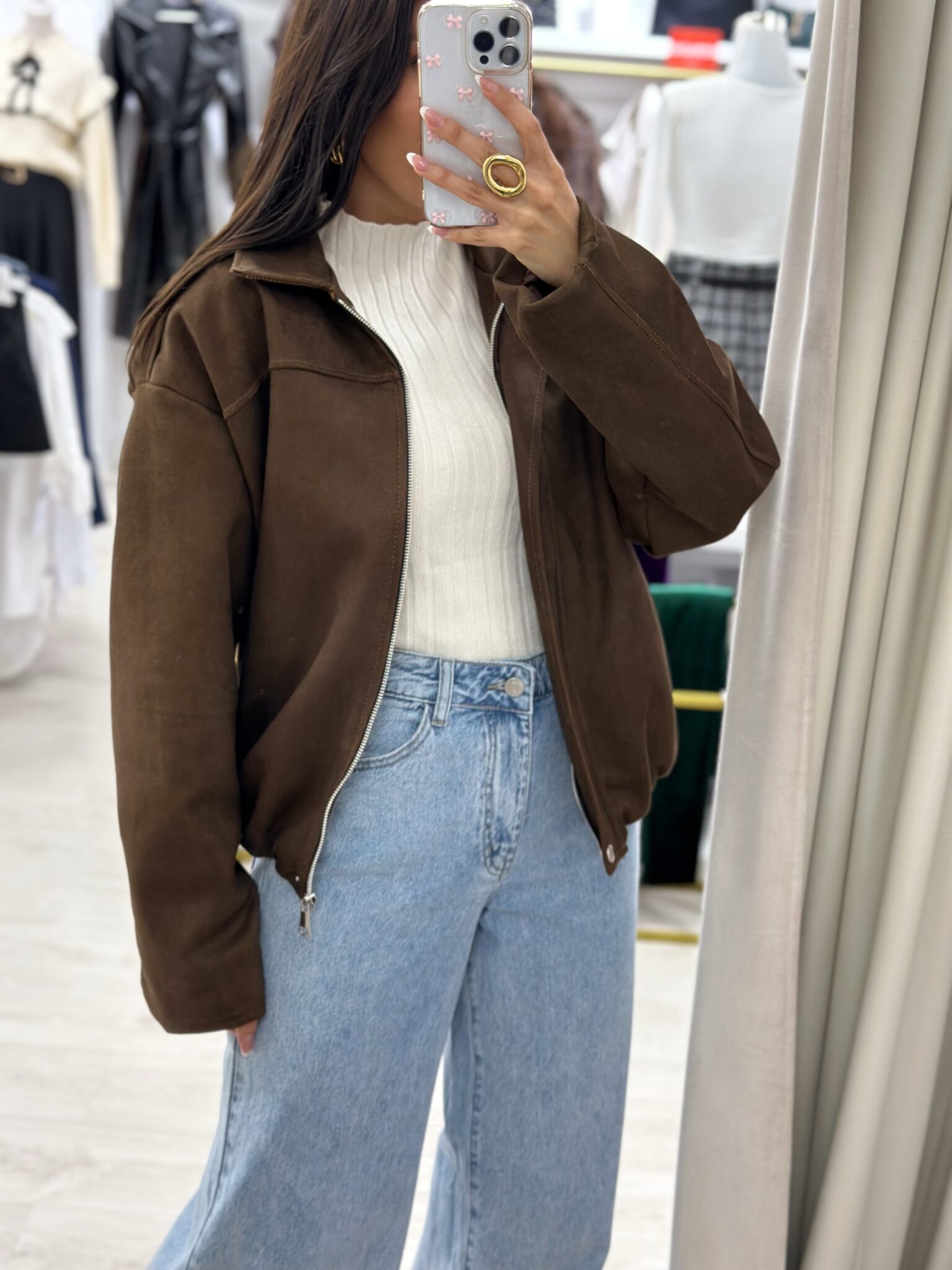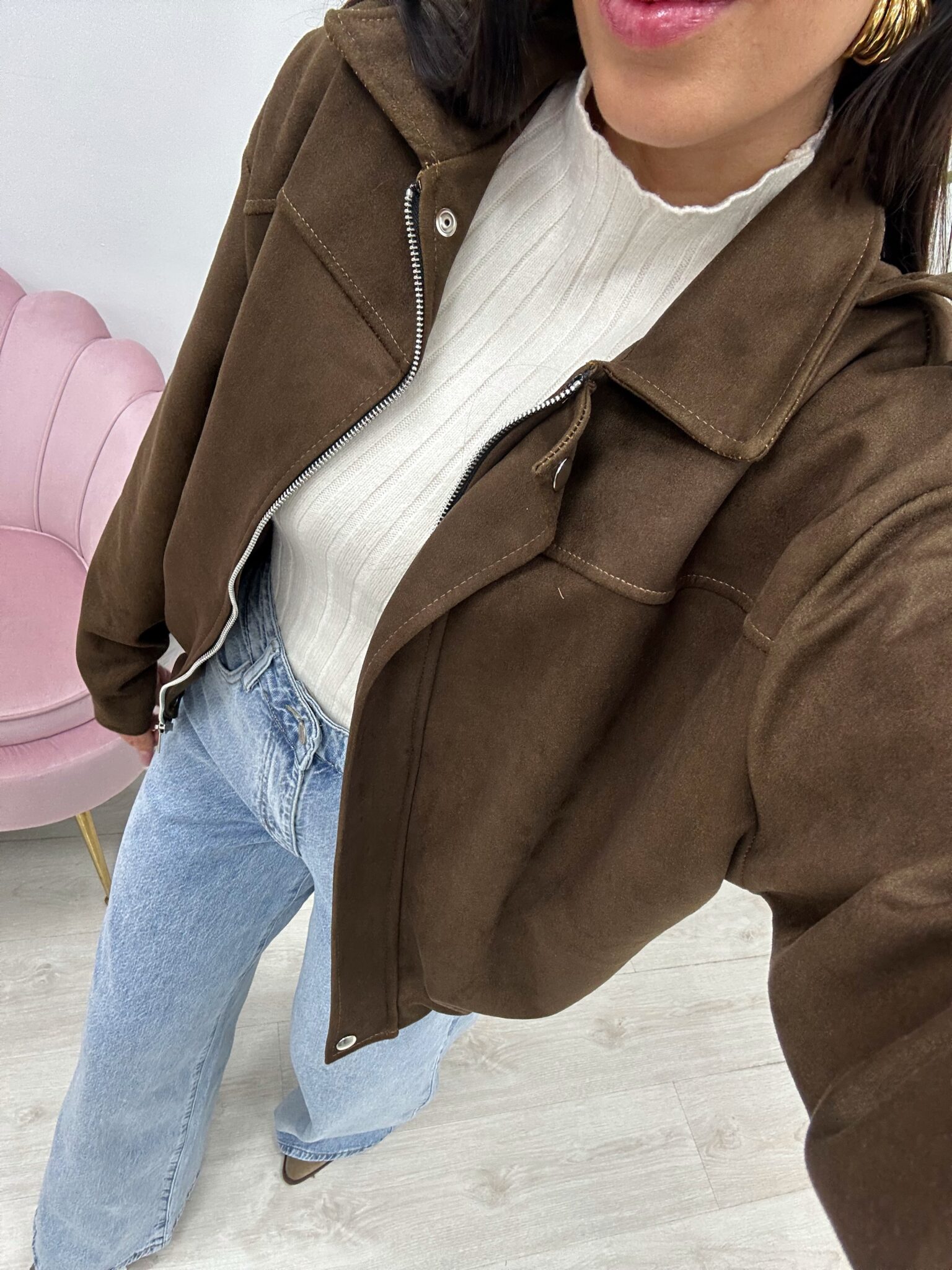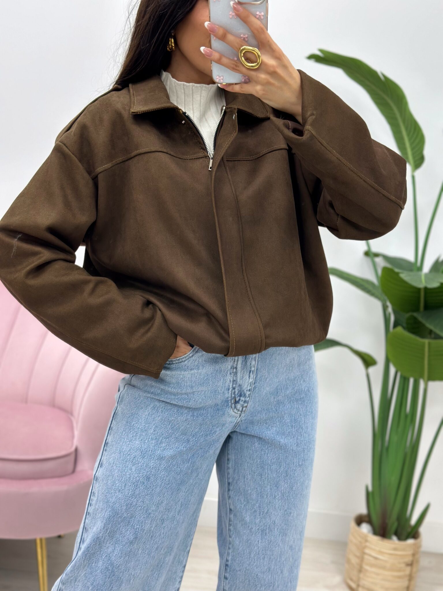 CHAQUETA BOMBER ZURI Talla única, estilo oversize, tejido de ante.