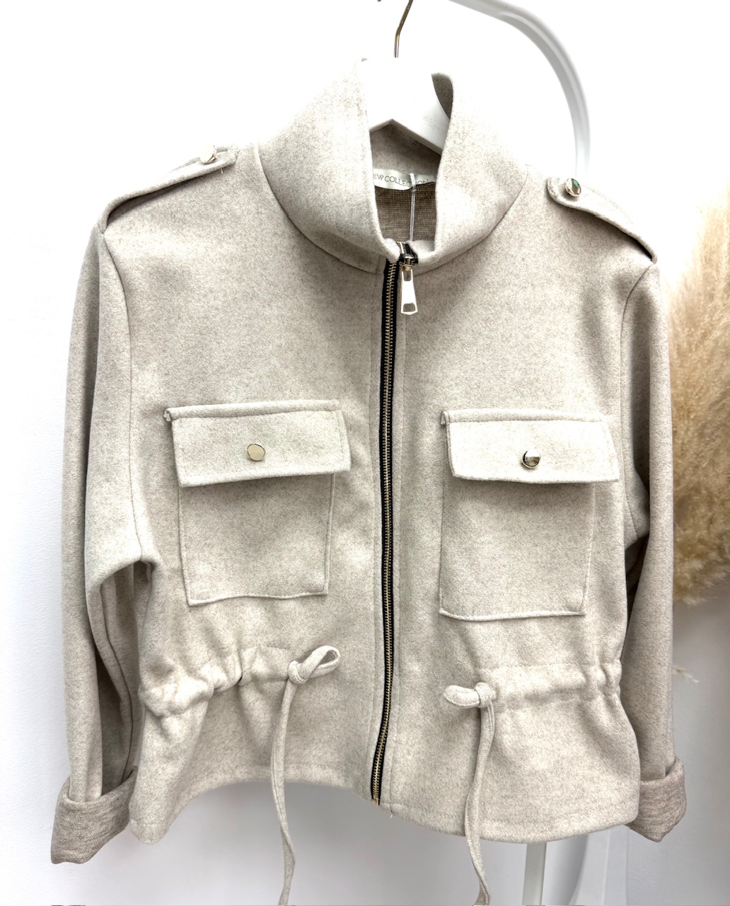 Chaqueta de estilo utilitario talla única, confeccionada en tejido tipo micropana, muy suave, ideal para todo tipo de looks.