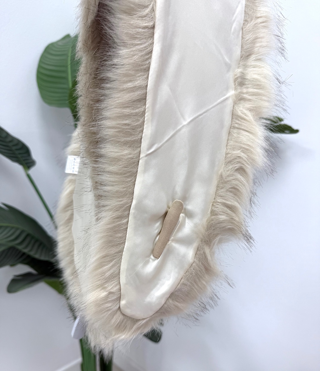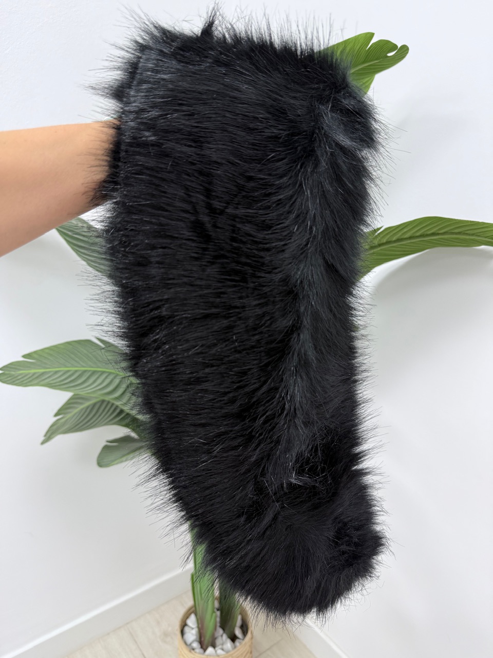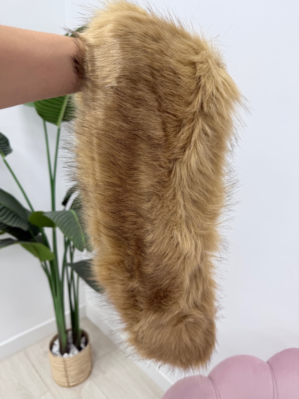 Este elegante cuello está confeccionado en pelo sintético de alta calidad, suave al tacto y con un acabado esponjoso que aporta calidez y estilo.
