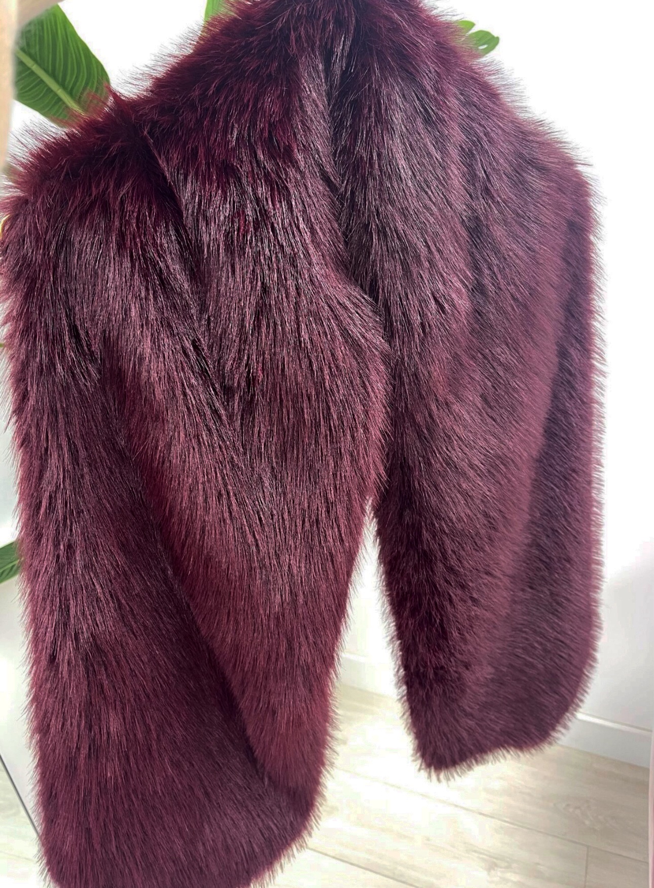 Tiene un diseño largo y voluminoso, con una textura suave y esponjosa que imita el pelaje natural.