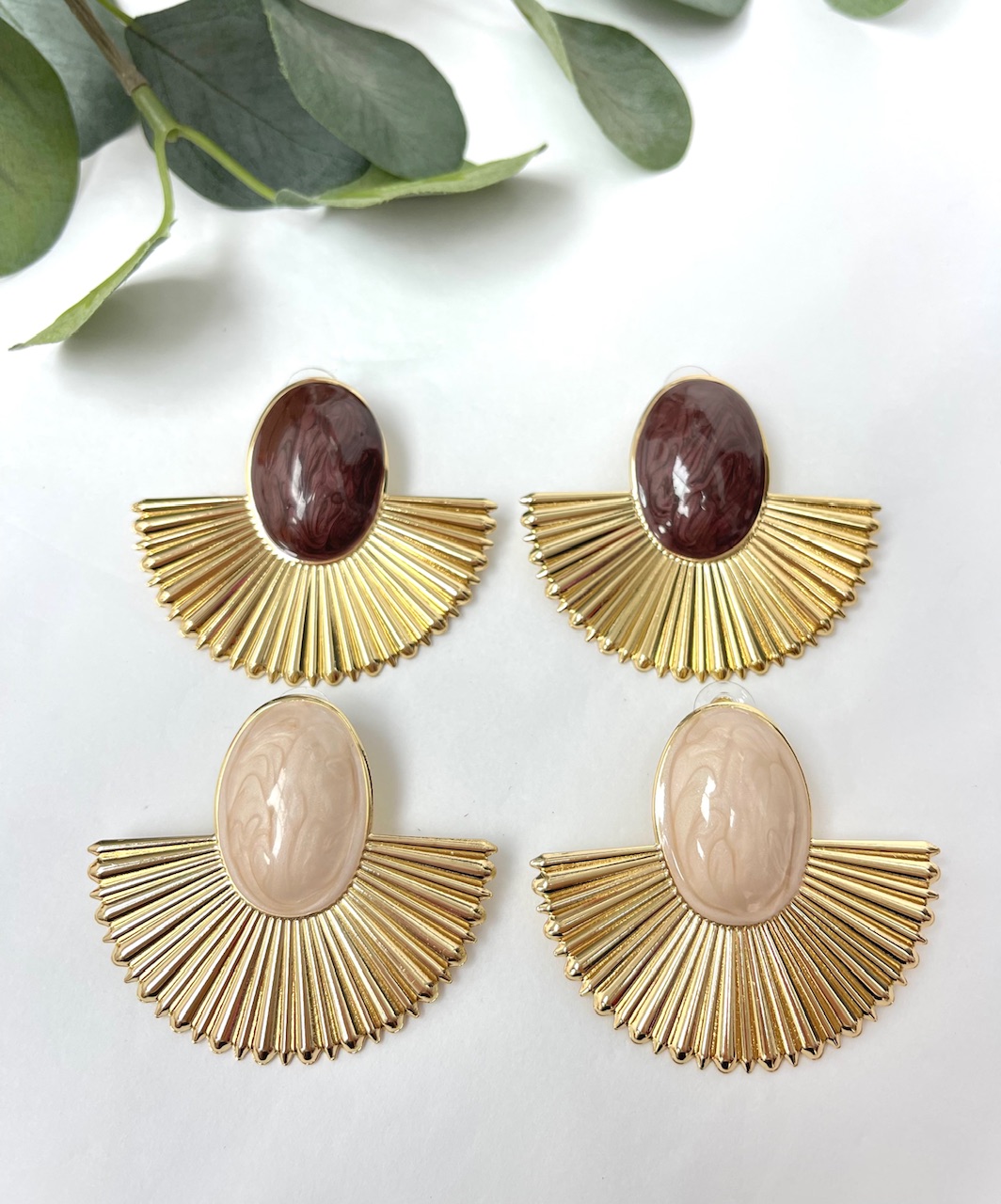 PENDIENTES ZEN Colores marrón y beige combinado con dorado.