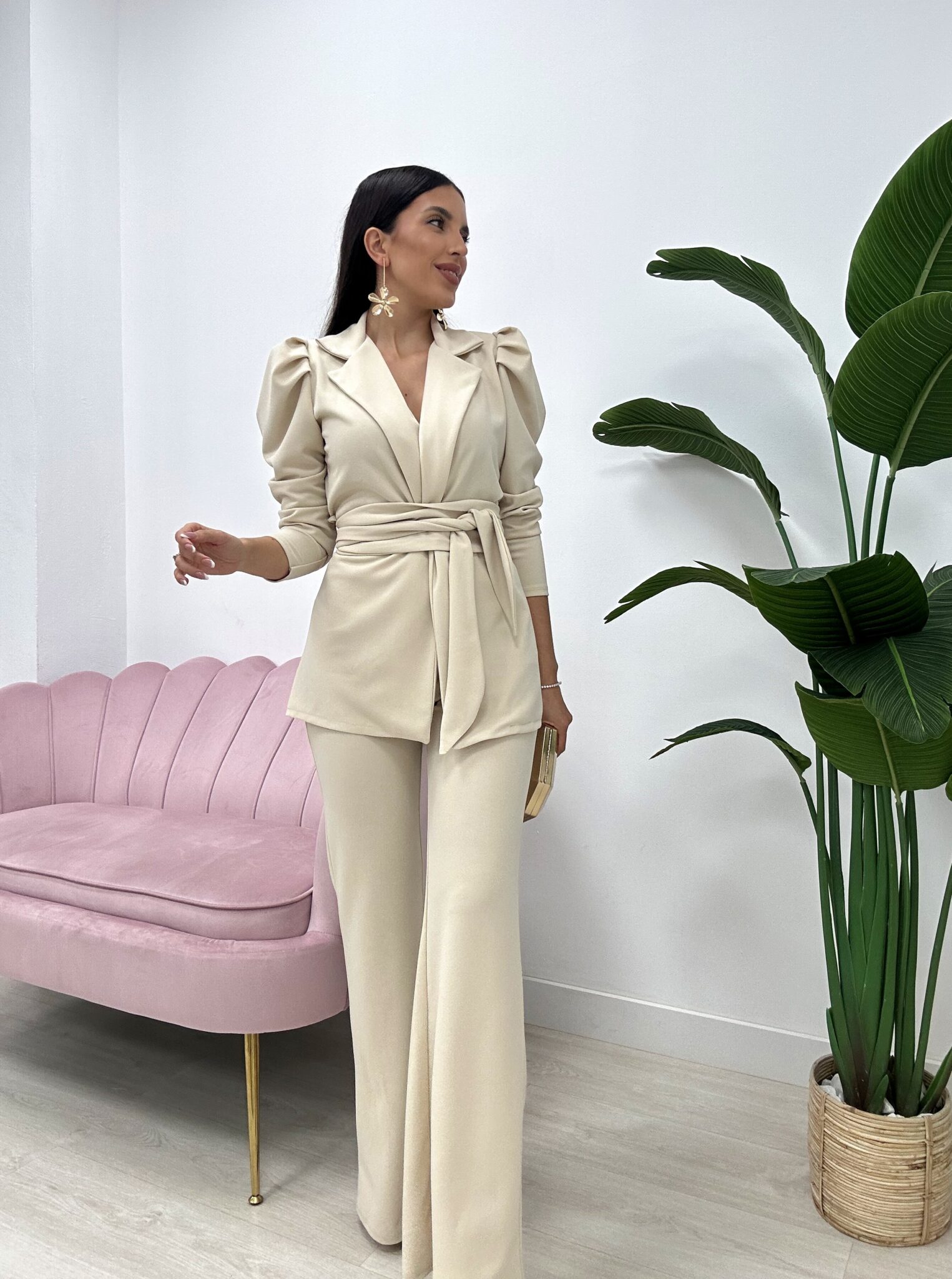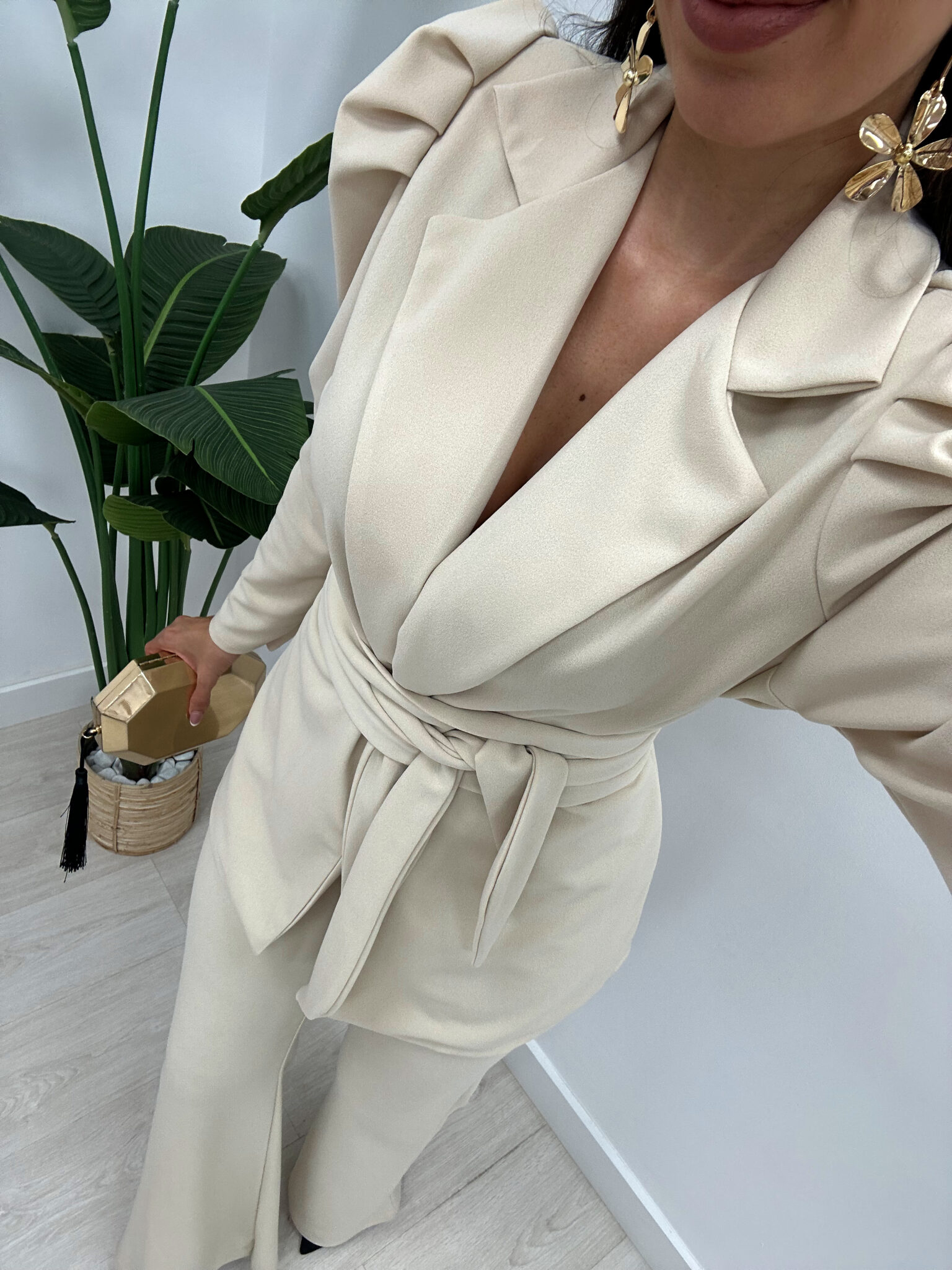 Un conjunto sofisticado y atemporal, perfecto para eventos, ocasiones especiales o looks formales con un toque moderno.