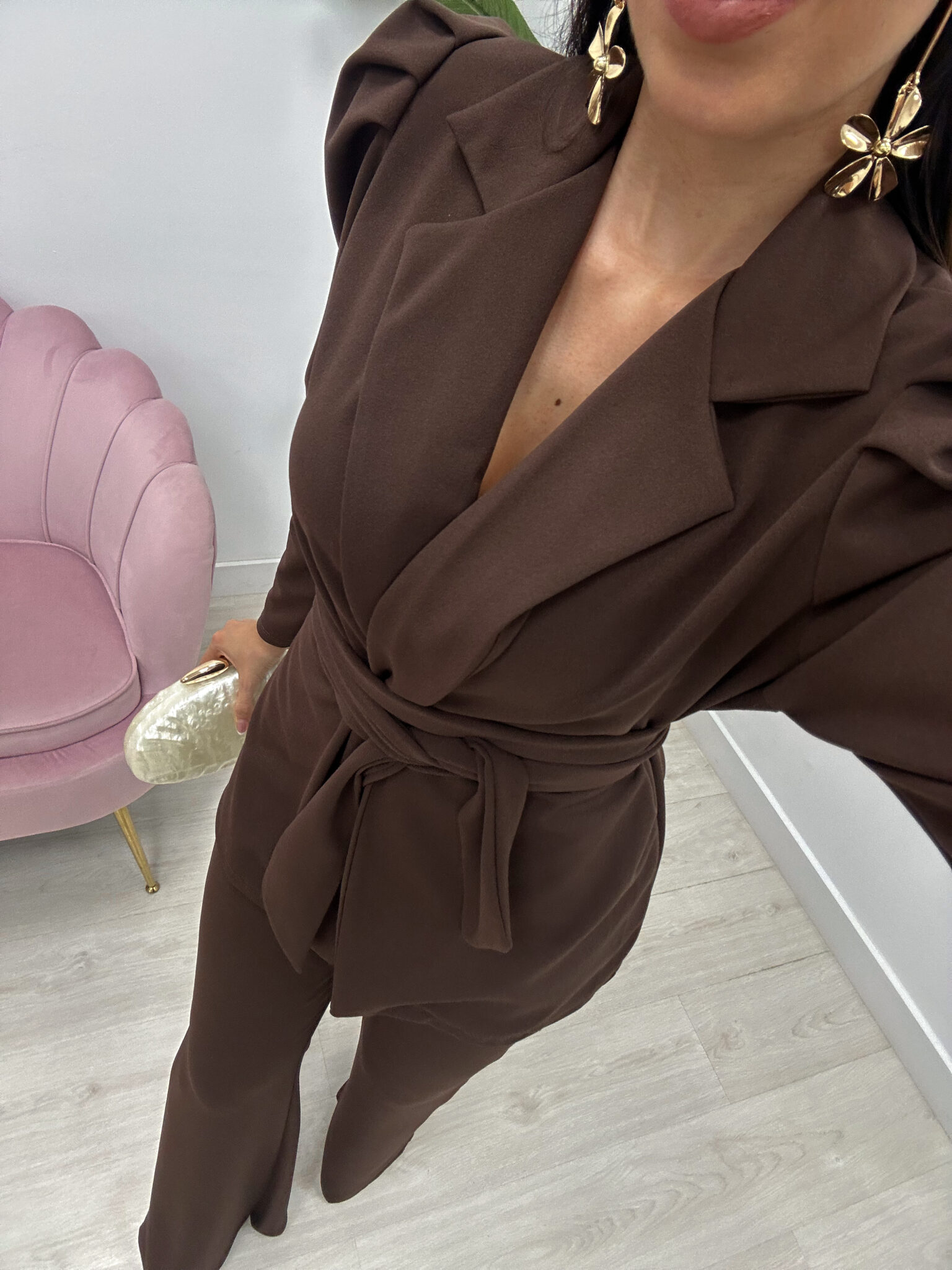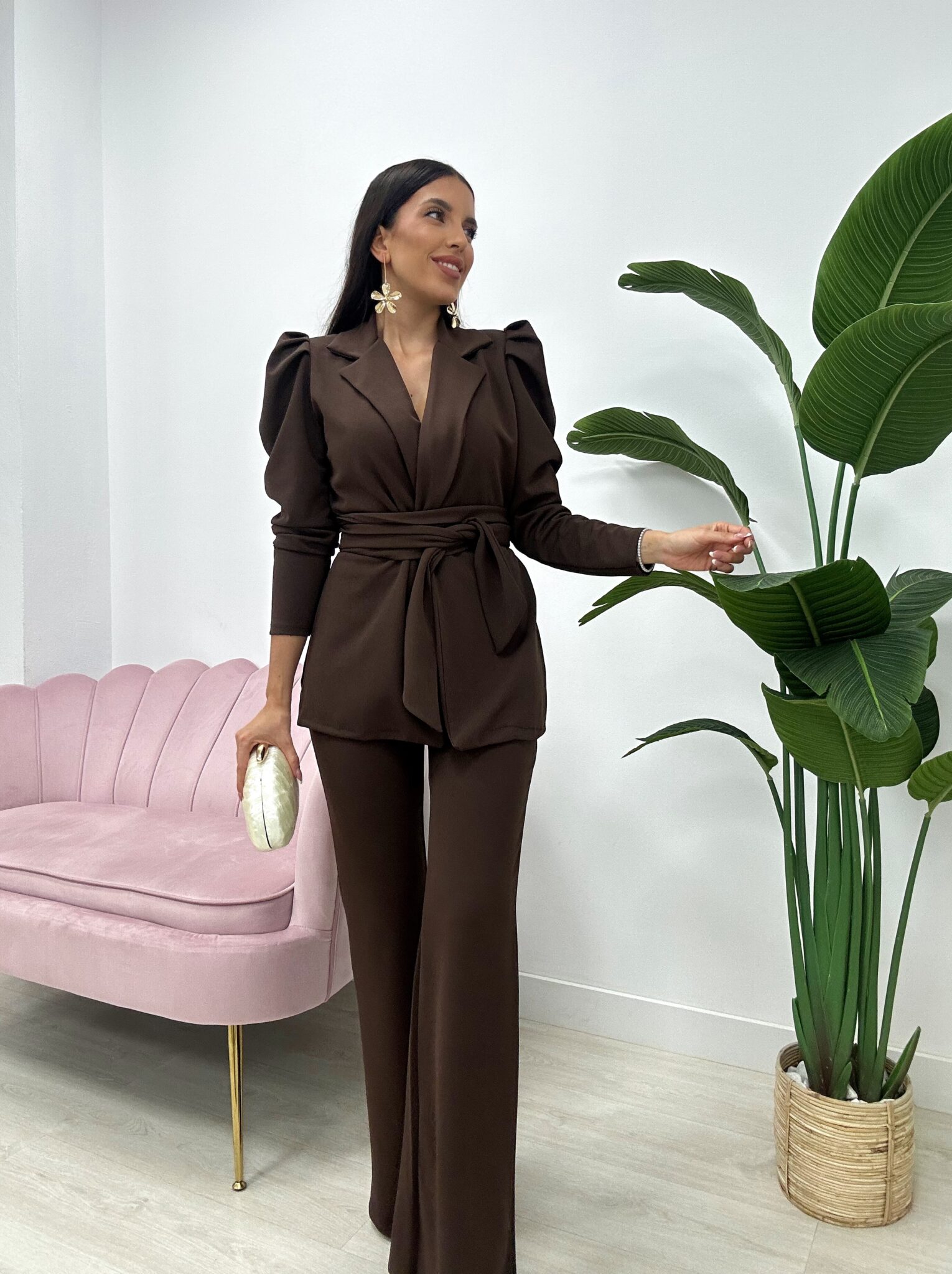 Un conjunto sofisticado y atemporal, perfecto para eventos, ocasiones especiales o looks formales con un toque moderno.