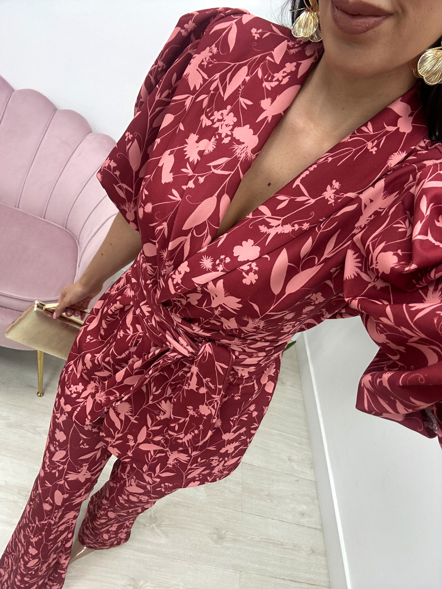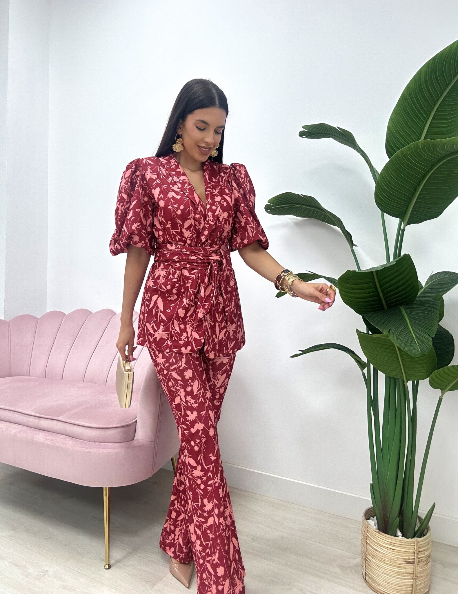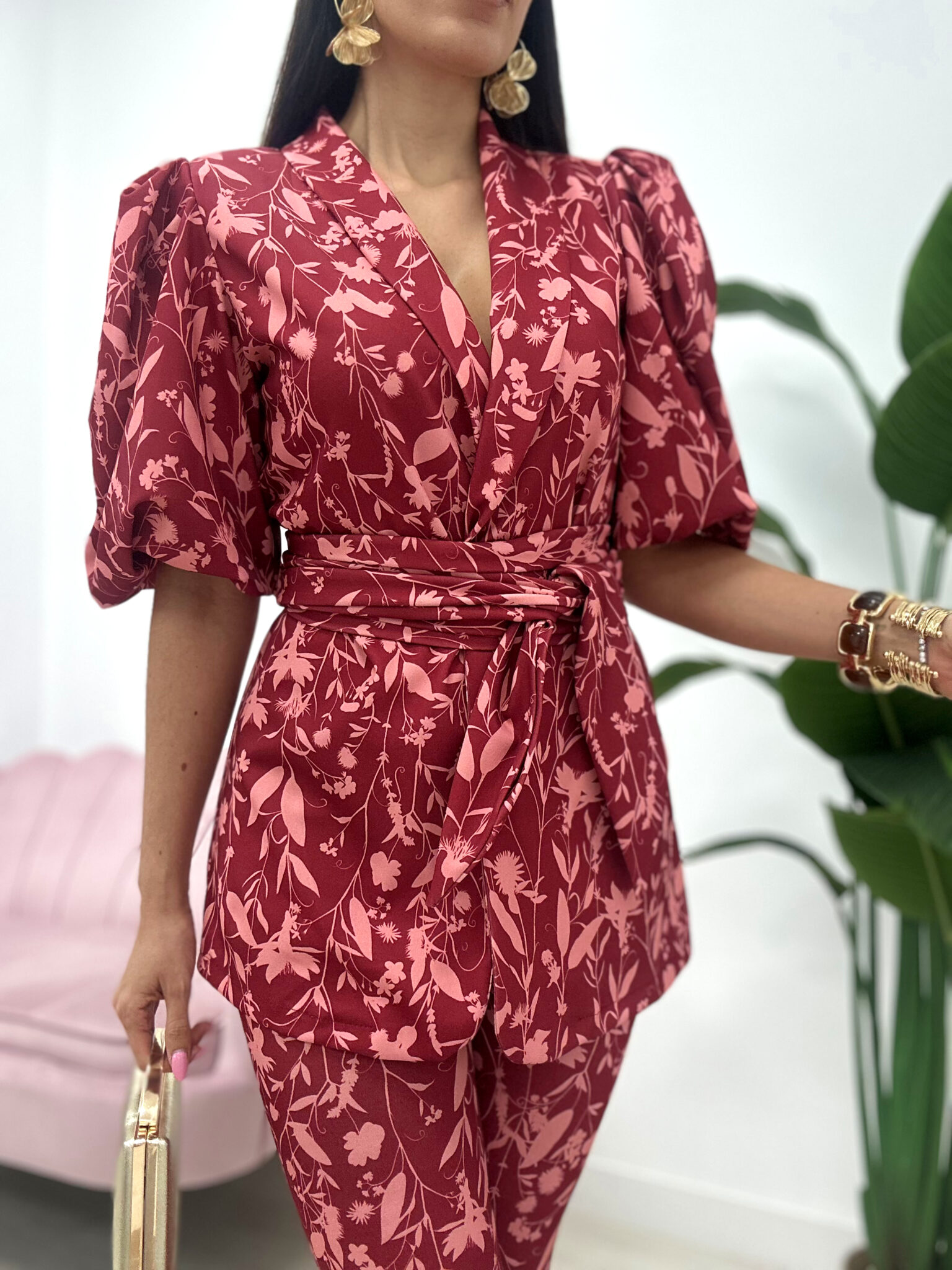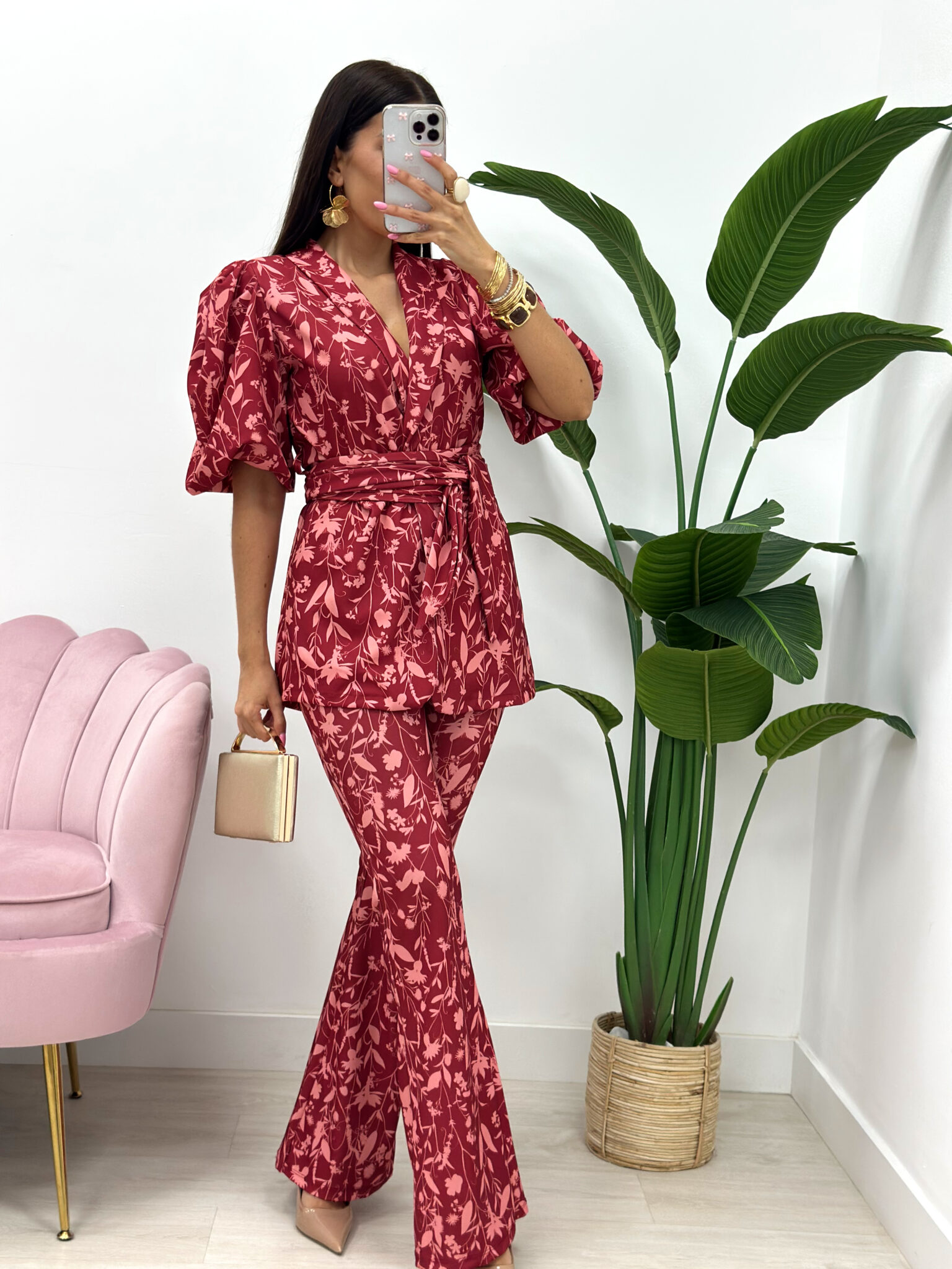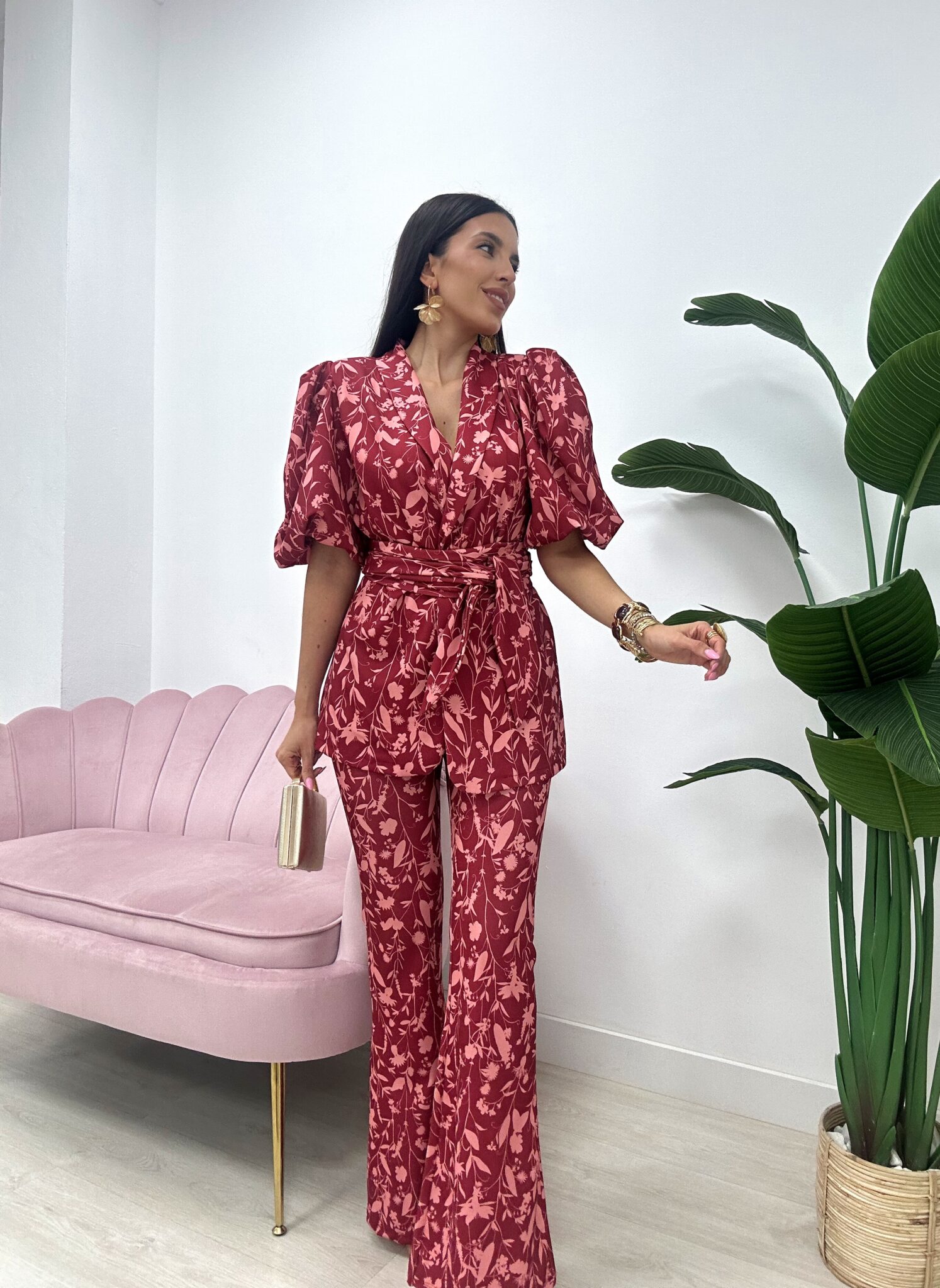 CONJUNTO RIDAO FLORAL ROJIZO