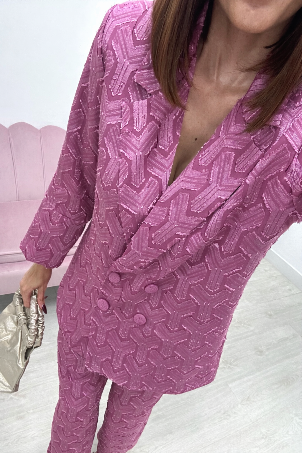 Los botones van forrados del mismo tejido que el traje.