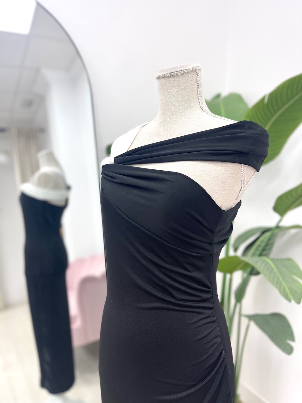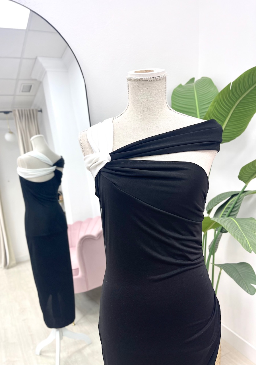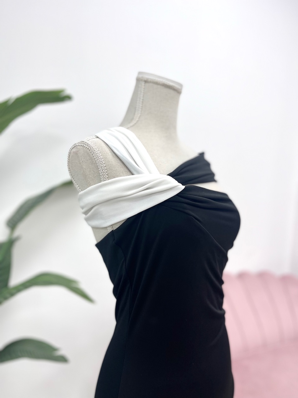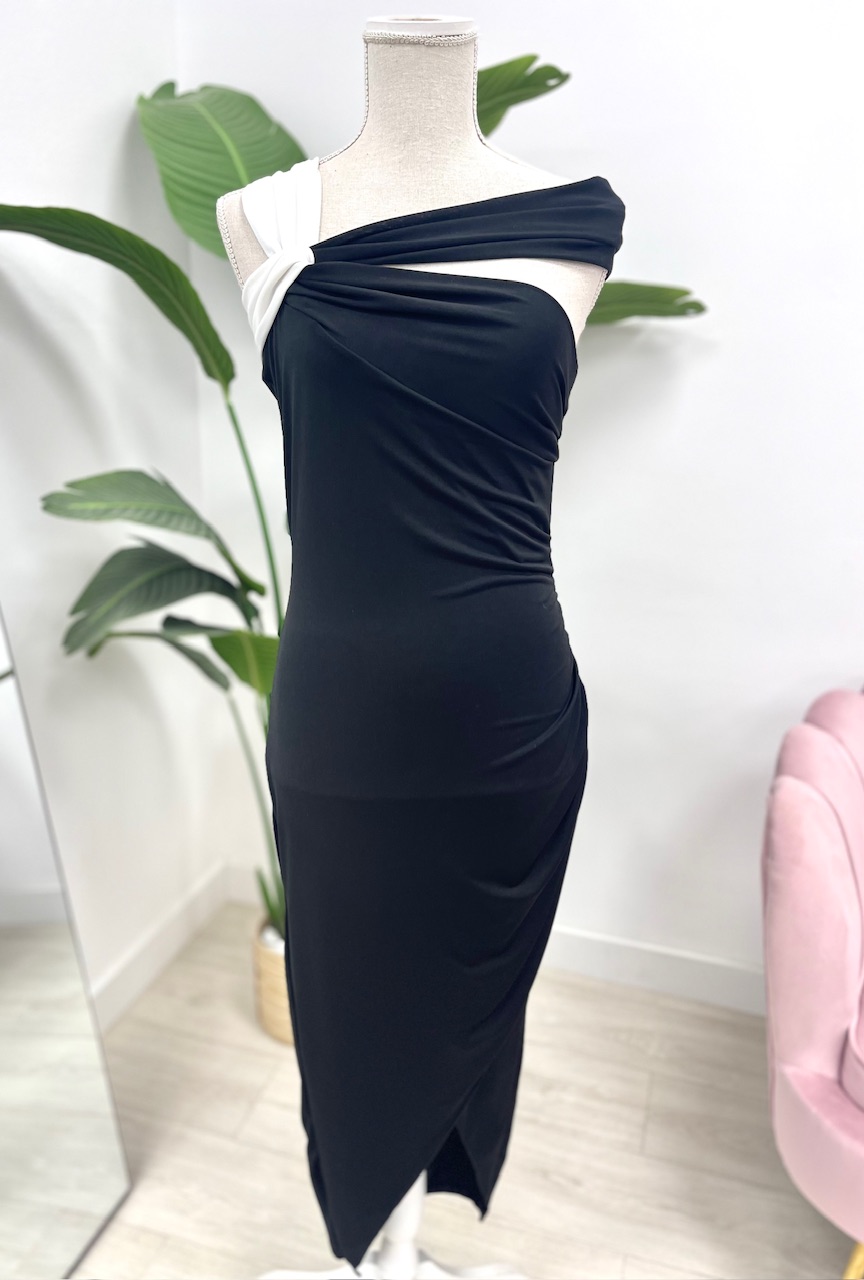 VESTIDO BICOLOR NEGRO BLANCO talla unica.
