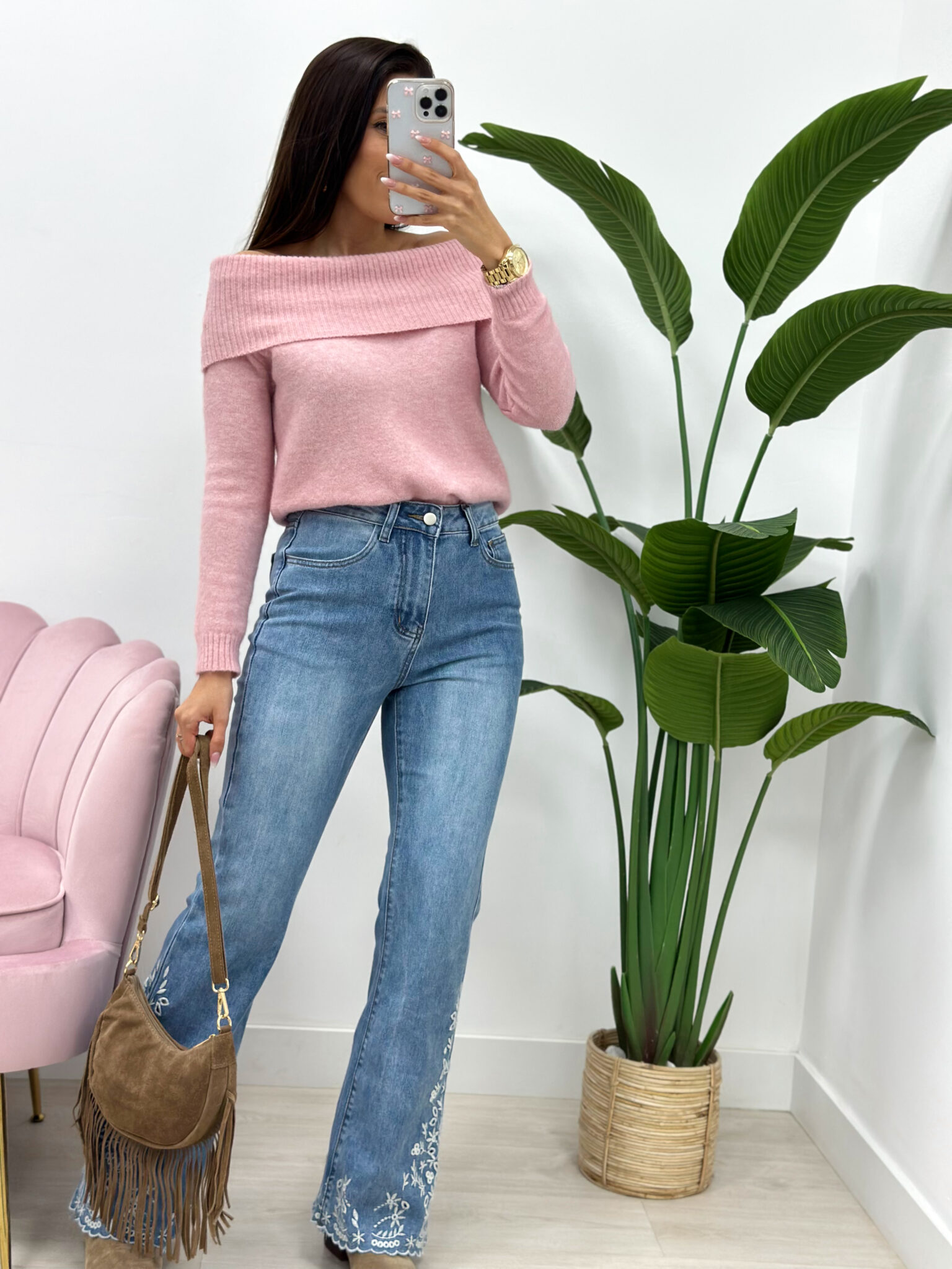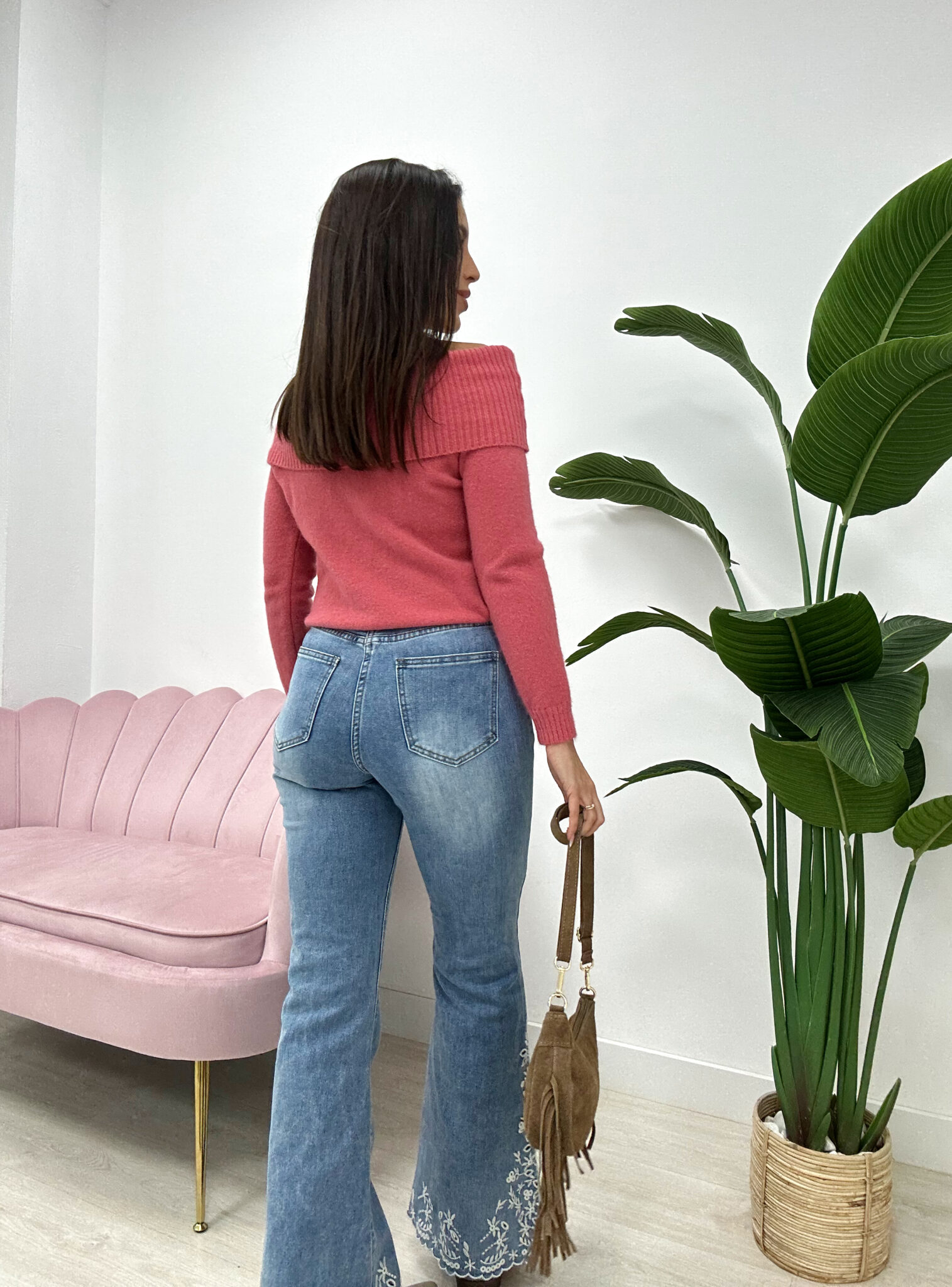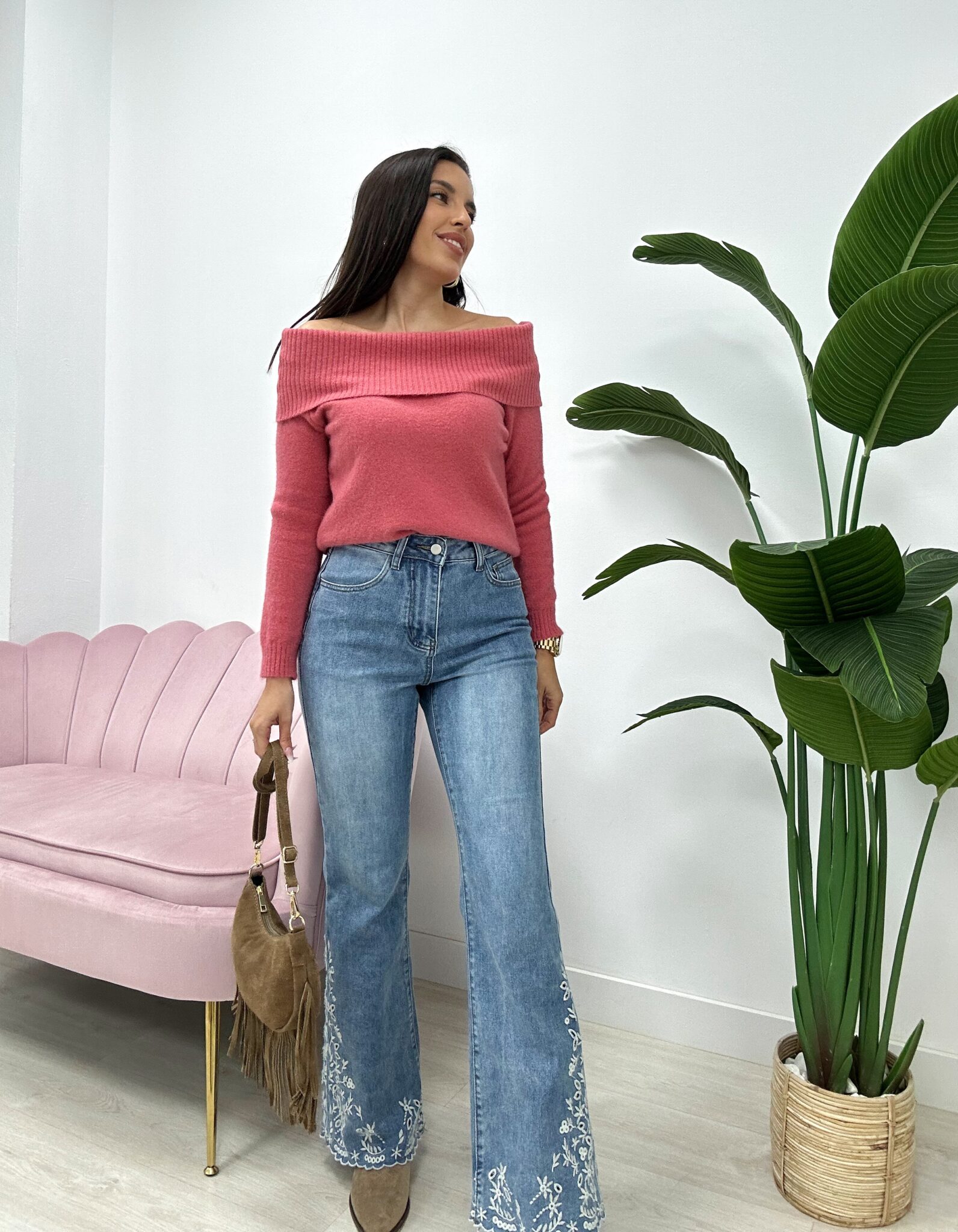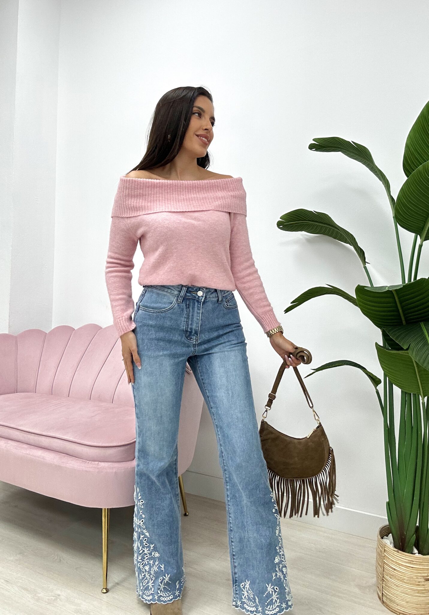 PANTALÓN DENIM BAJO BORDADO