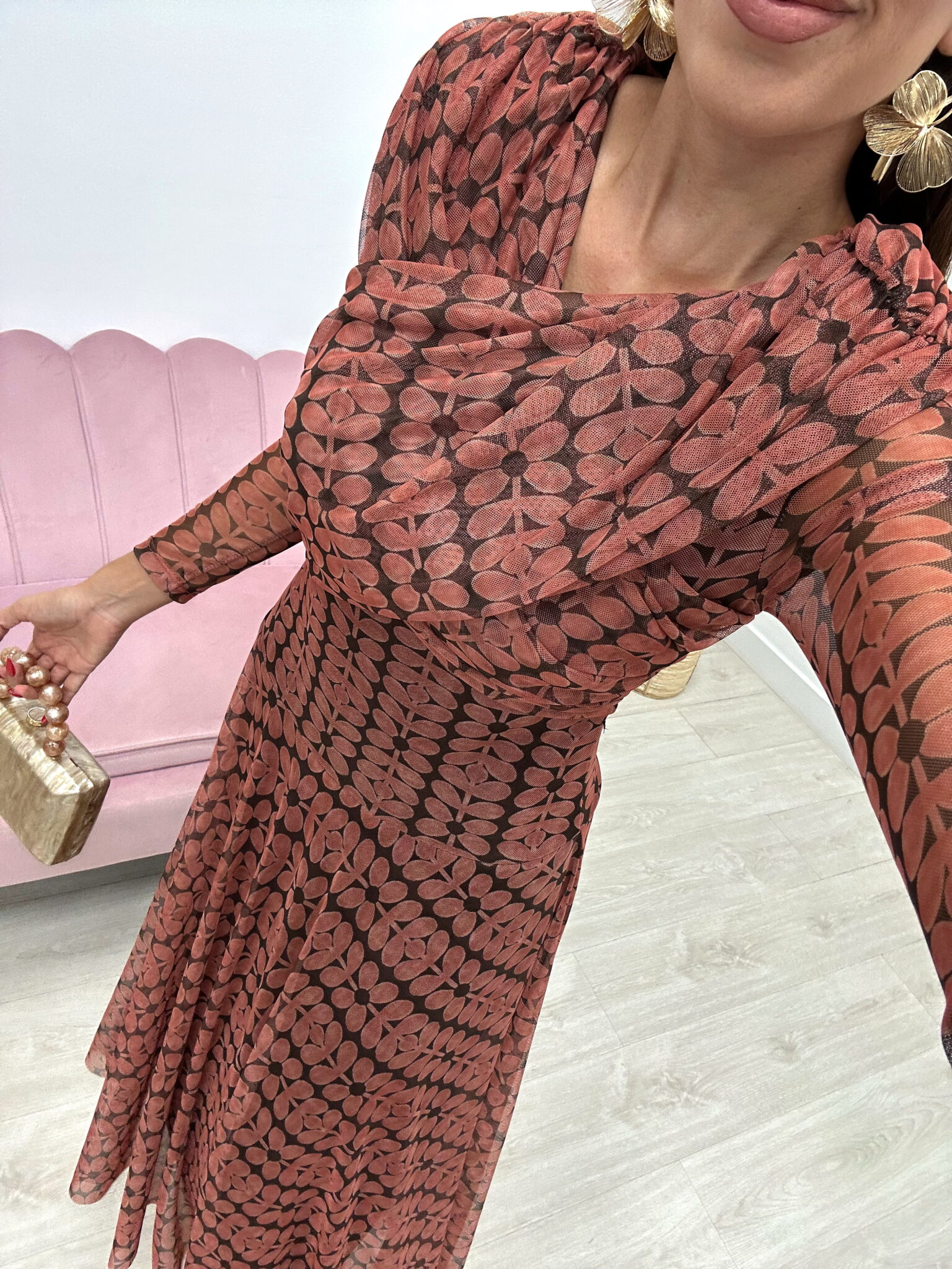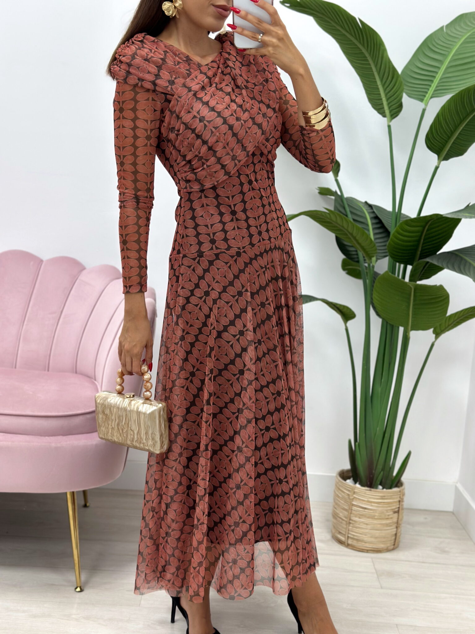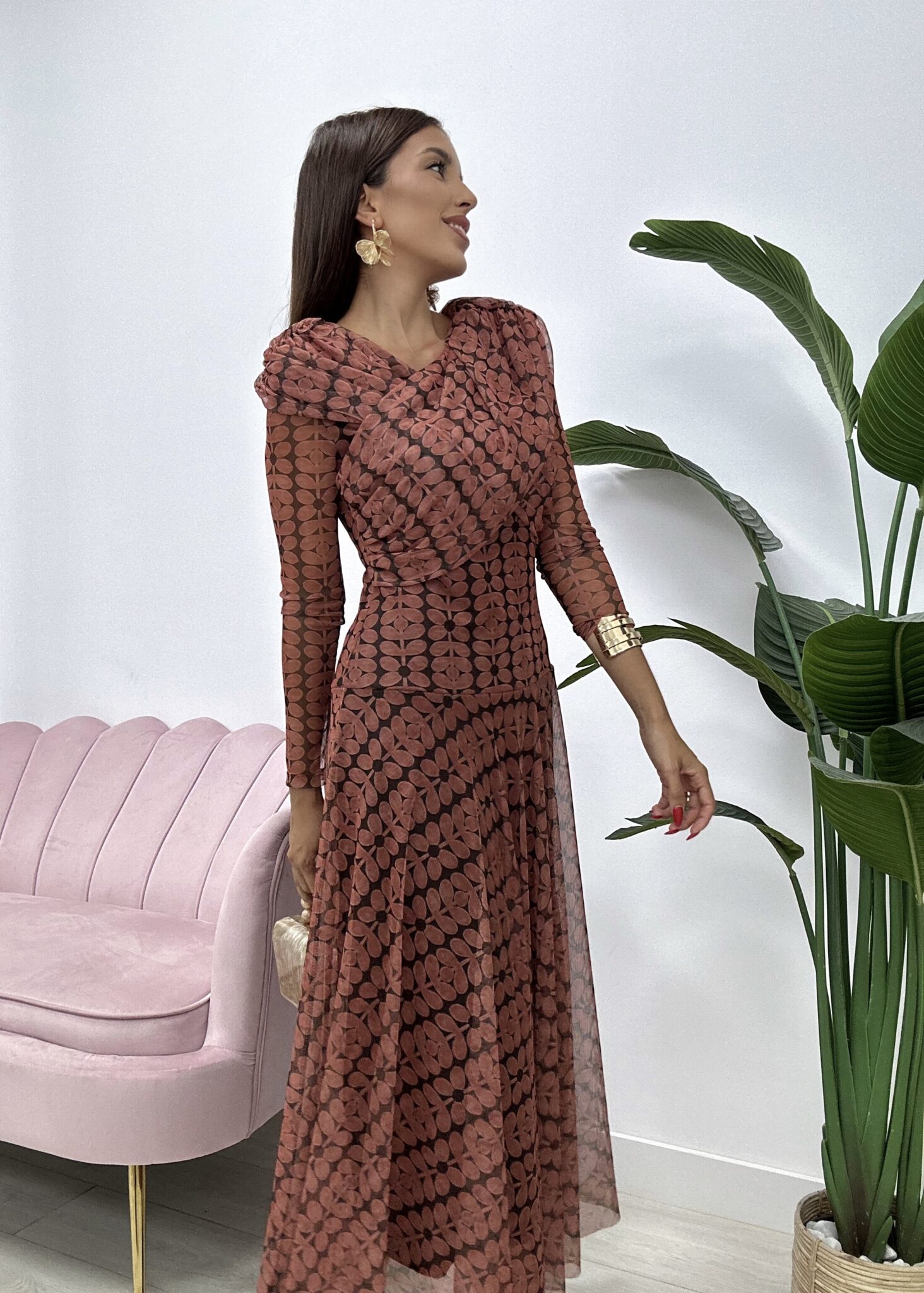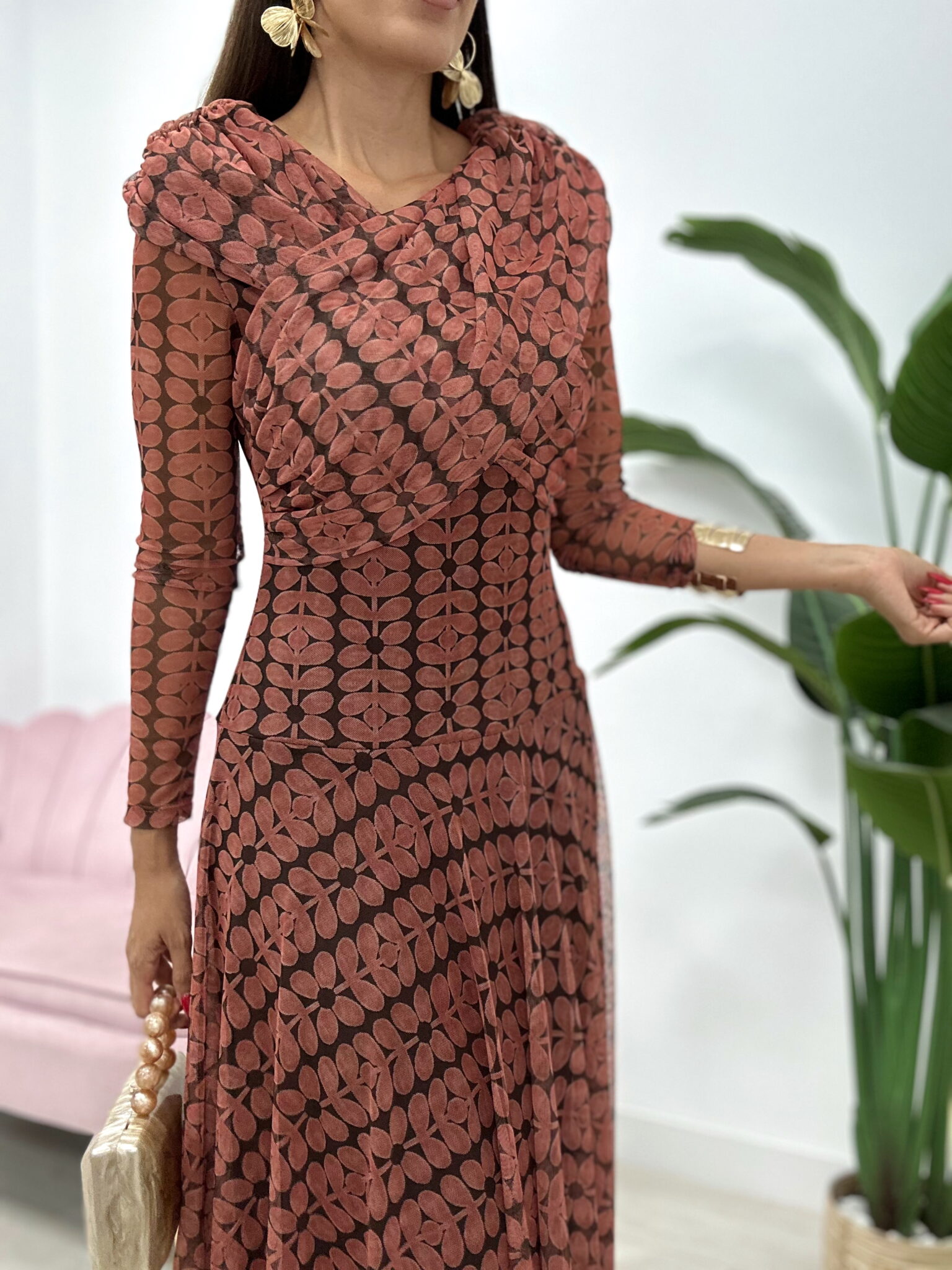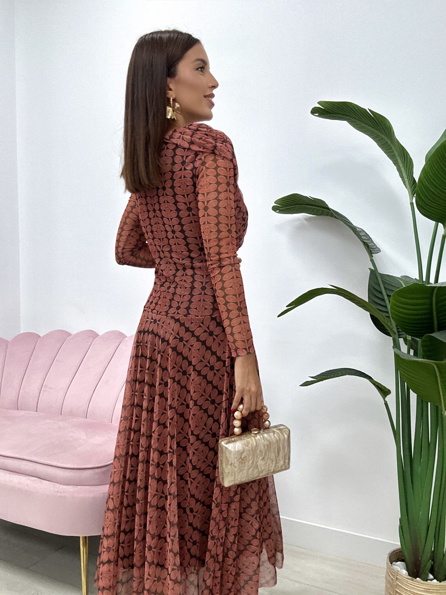 Llama la atención por su delicado estampado combinado con el tono marrón, tan tendencia está temporada.
