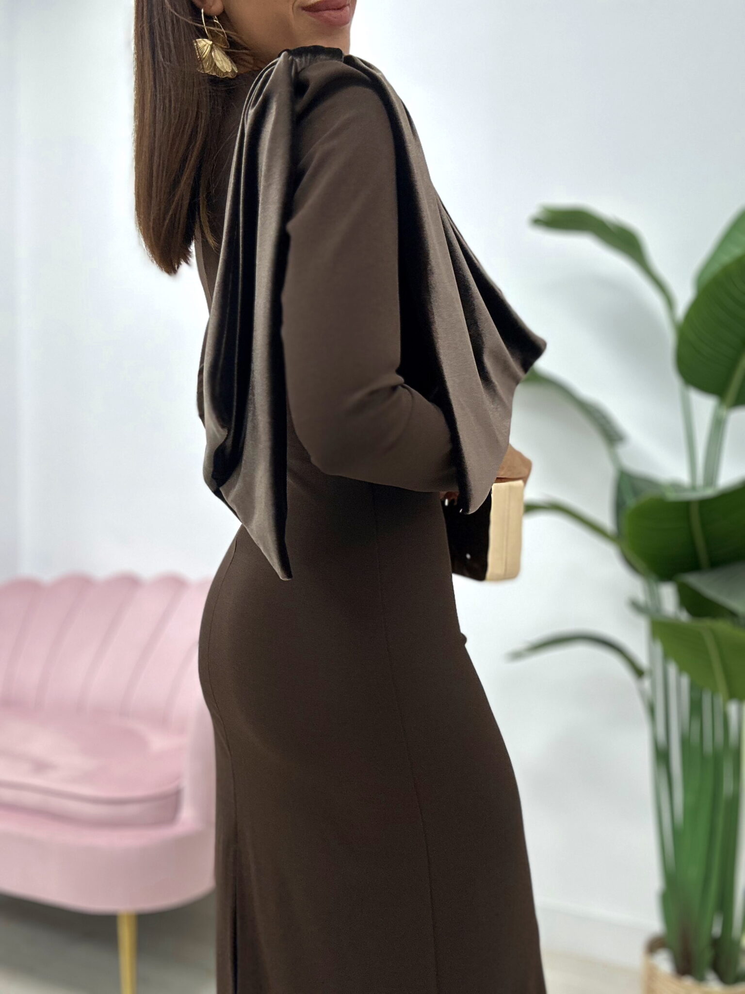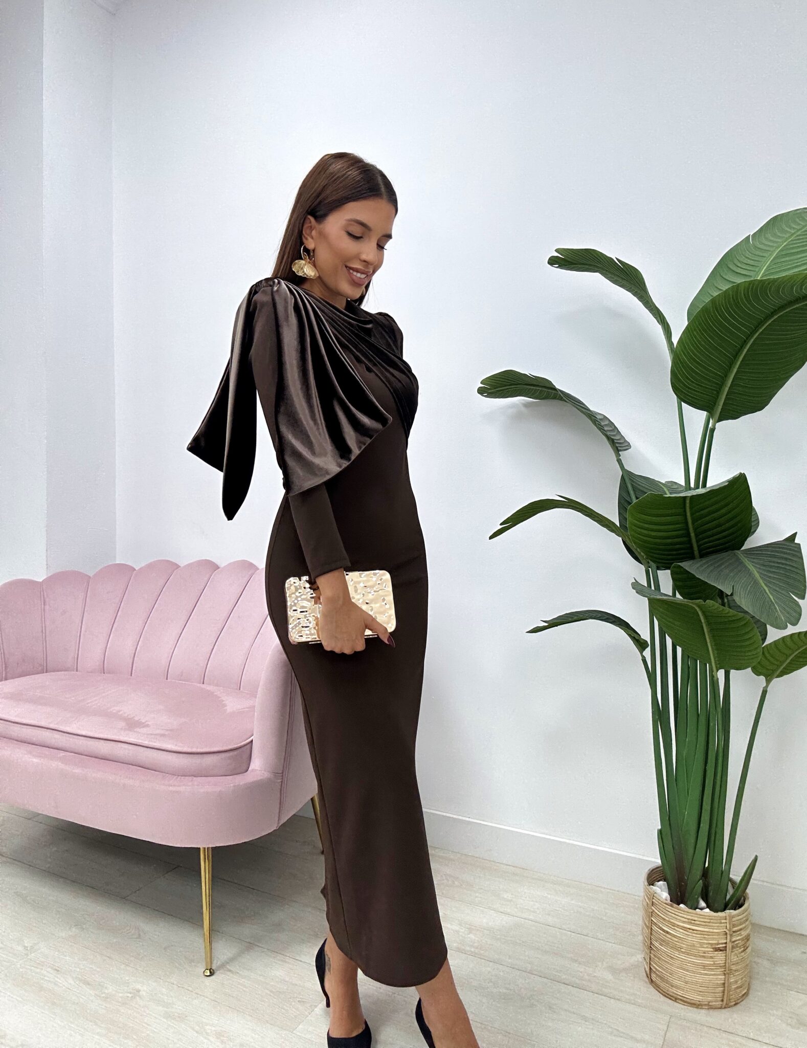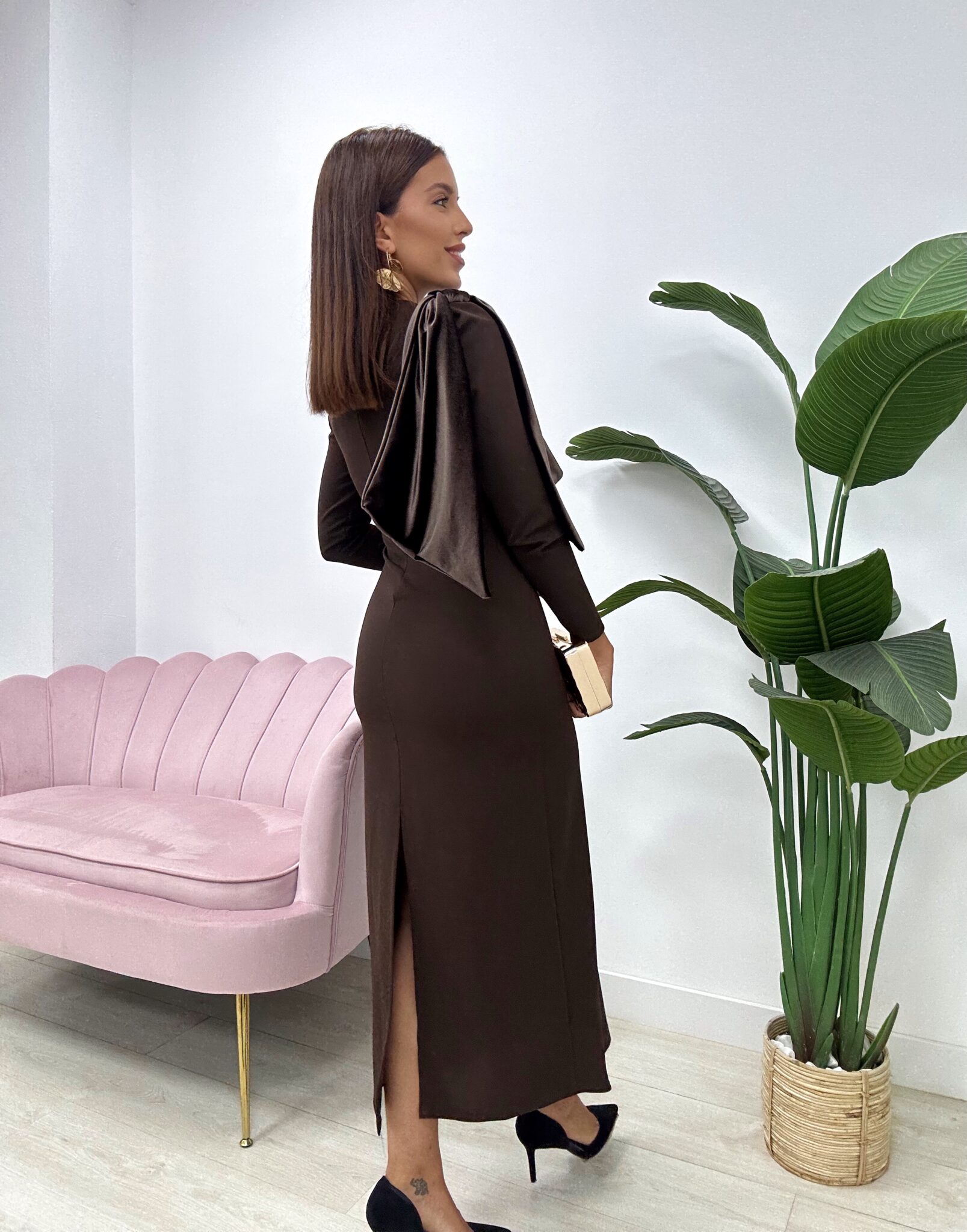Eleva tu estilo con este elegante vestido de fiesta en marrón, un vestido sofisticado diseñado para destacar en cualquier evento especial.