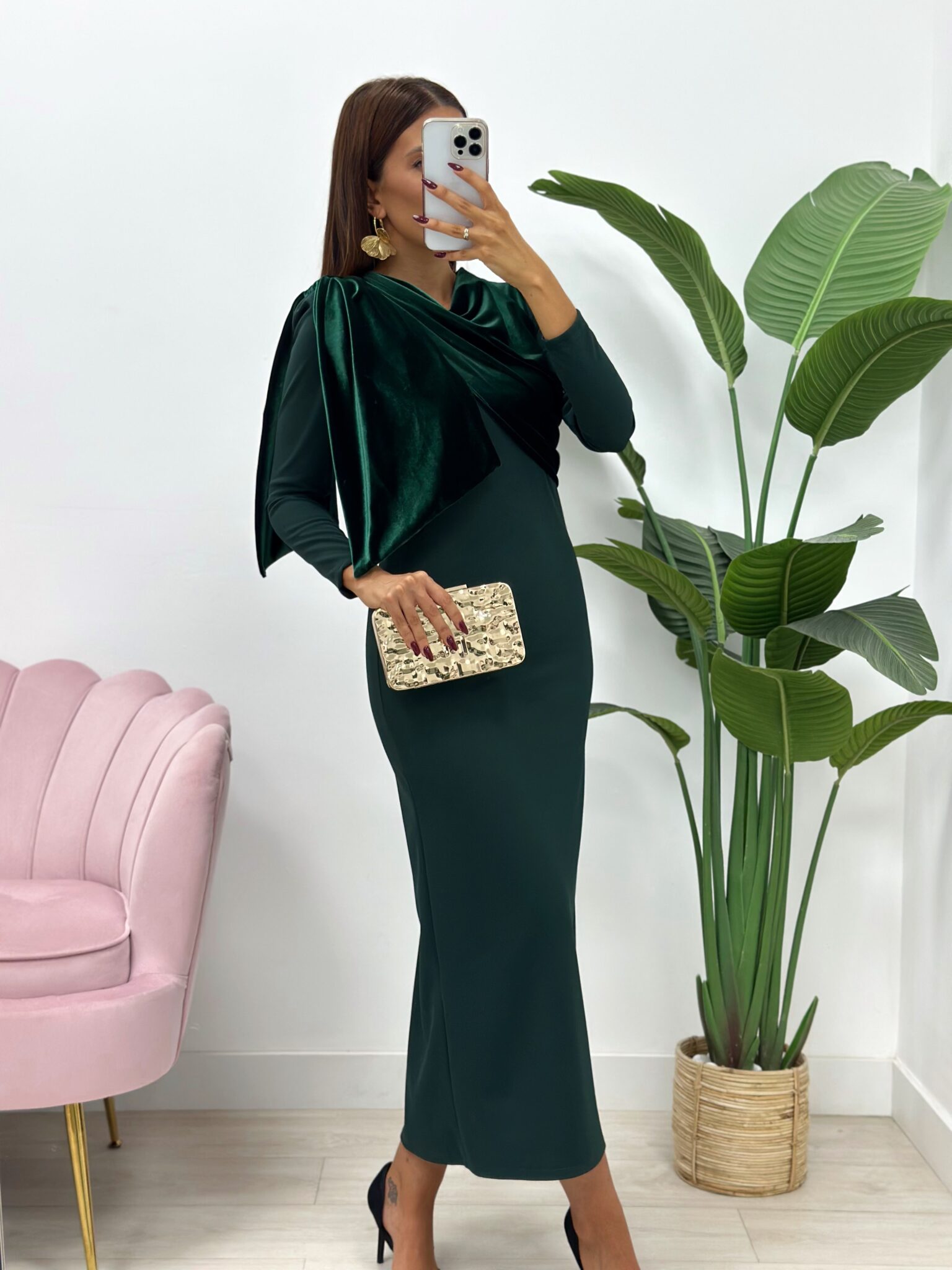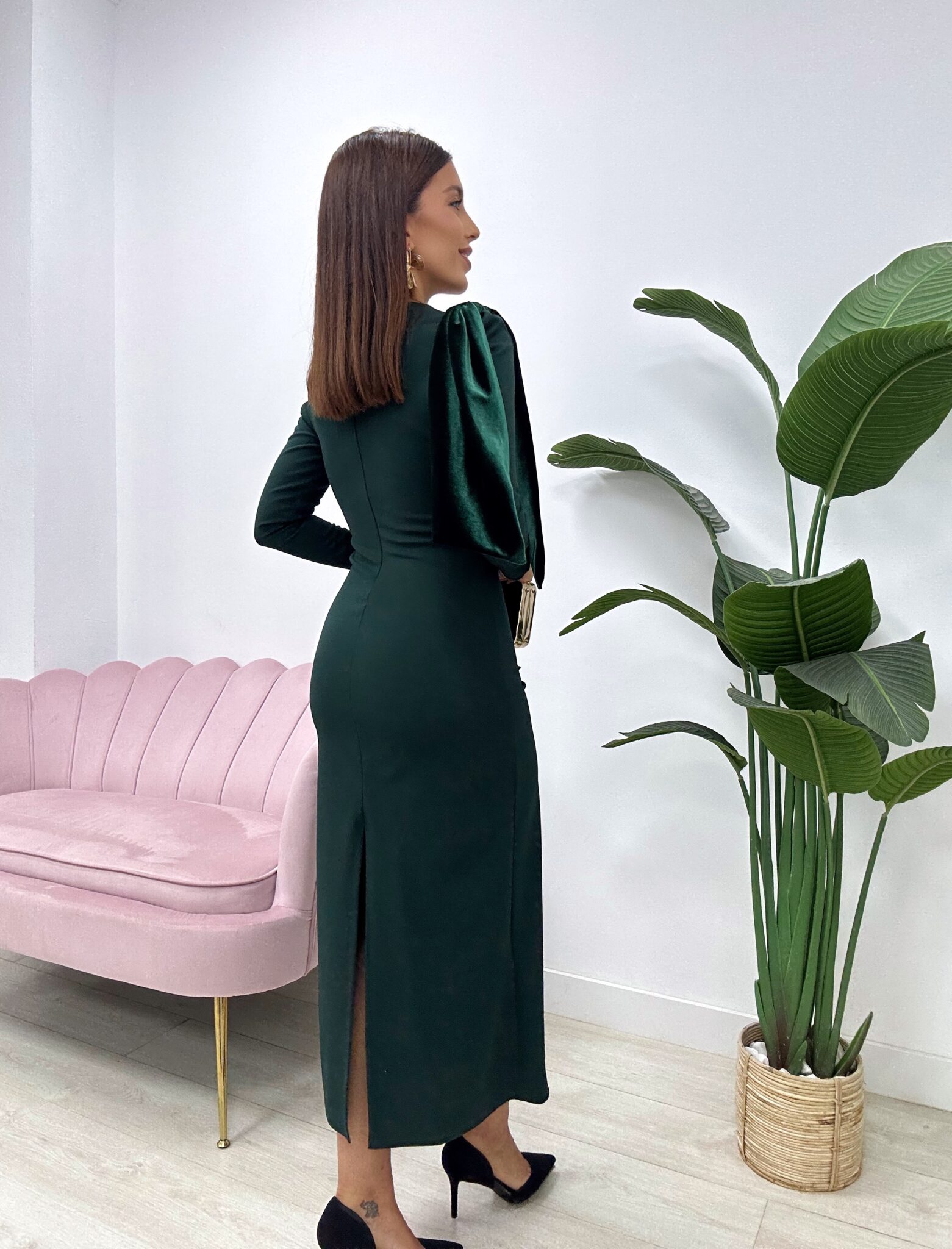 Eleva tu estilo con este elegante vestido de fiesta en verde botella, un vestido sofisticado diseñado para destacar en cualquier evento especial.