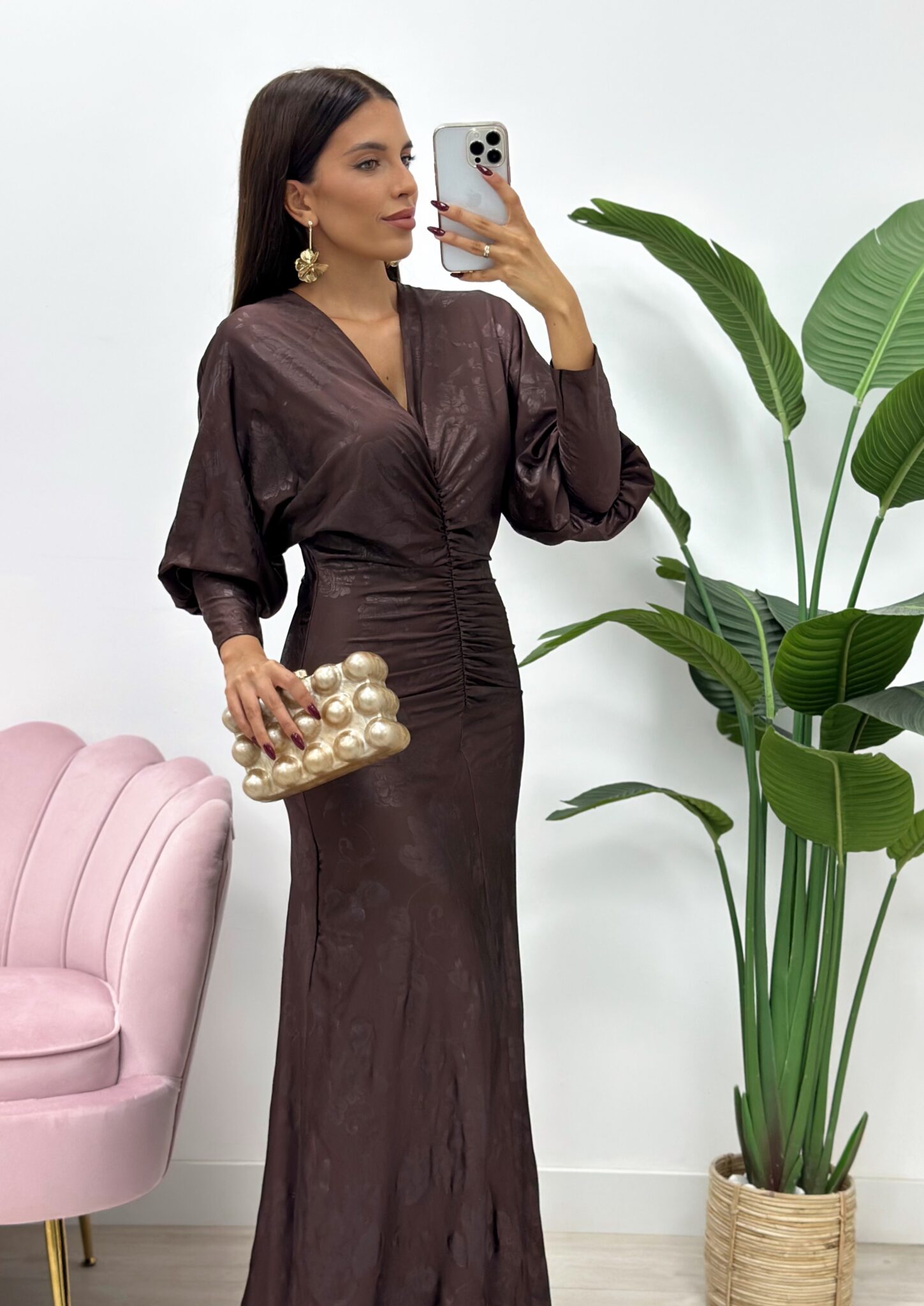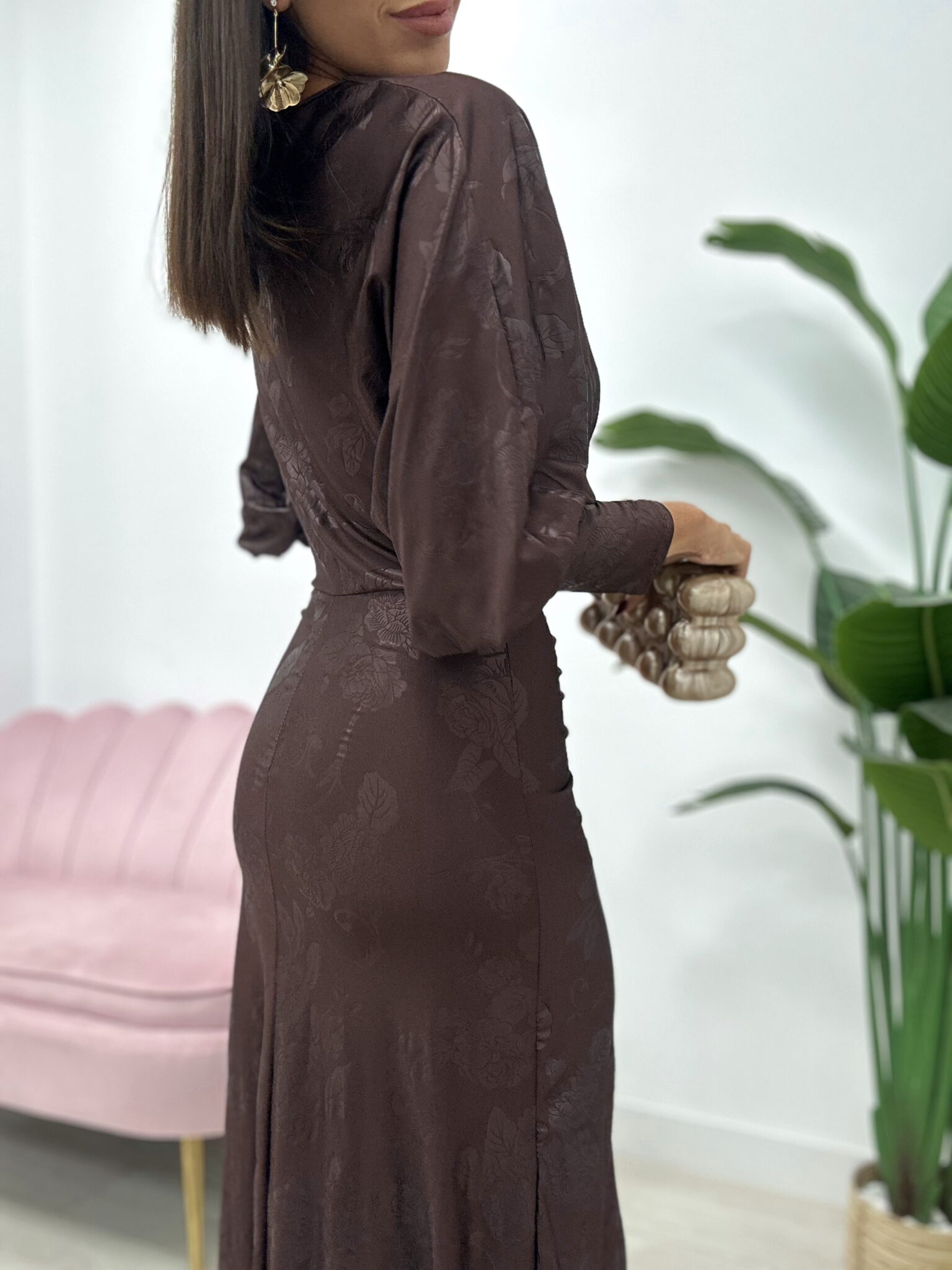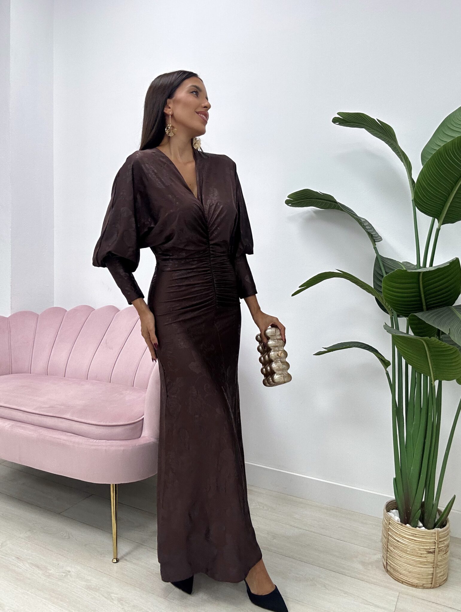 Si buscas un look que combine elegancia, estilo y un toque de sofisticación moderna, este vestido largo midi en marrón es tu mejor opción.