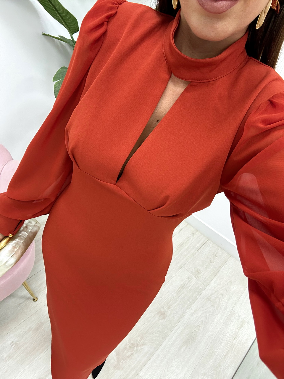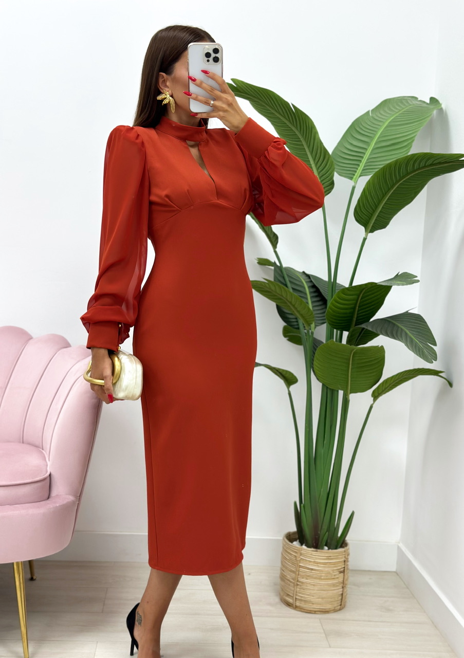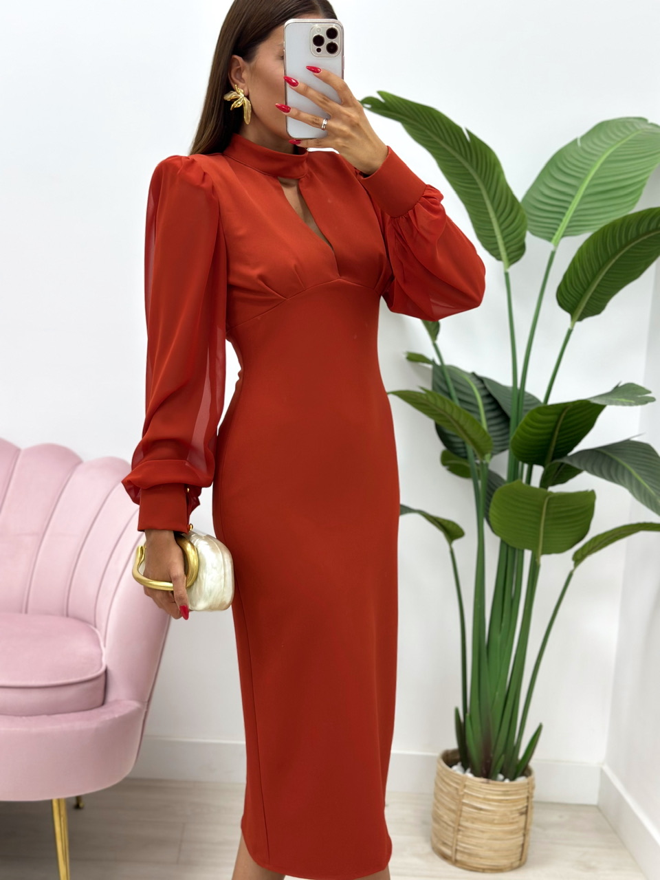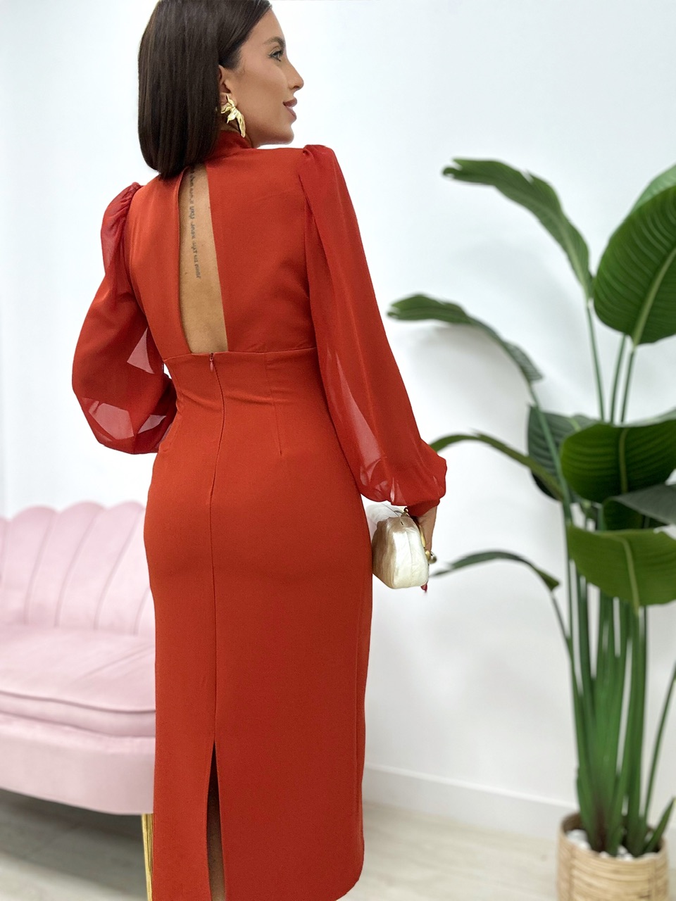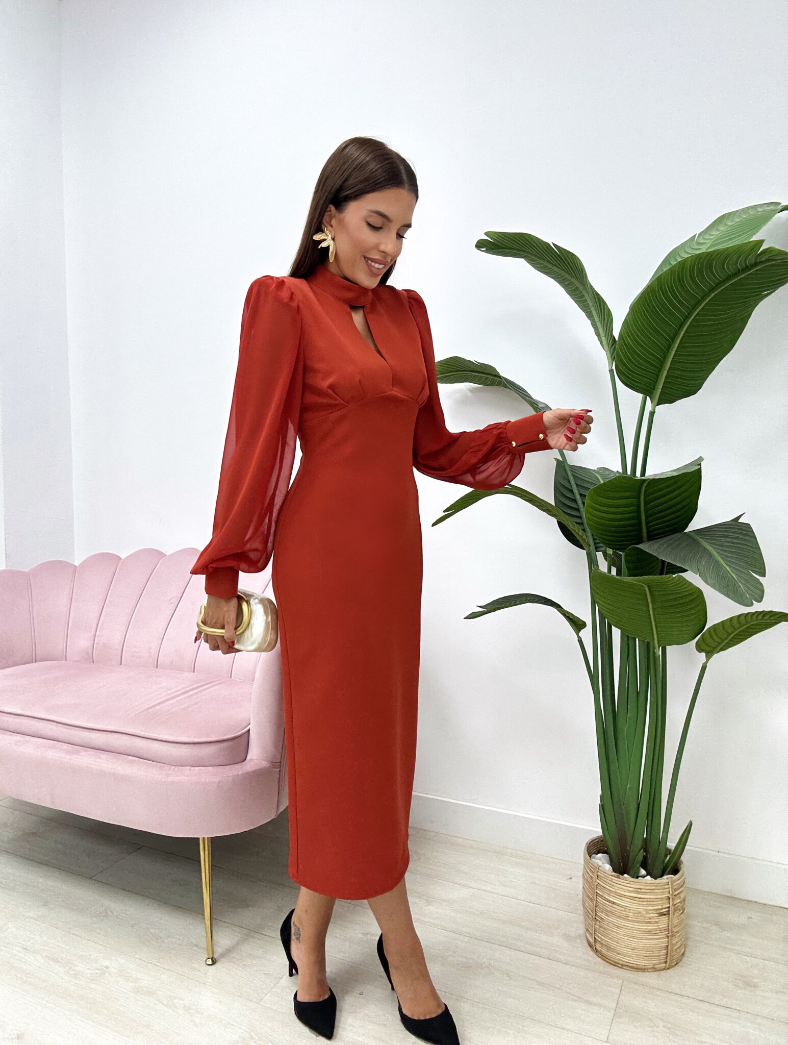 Vestido de invitada en corte midi, ideal para cualquier evento, como bodas, bautizos incluso graduaciones. Con uno de los colores tendencia de la temporada serás la invitada perfecta este otoño invierno.