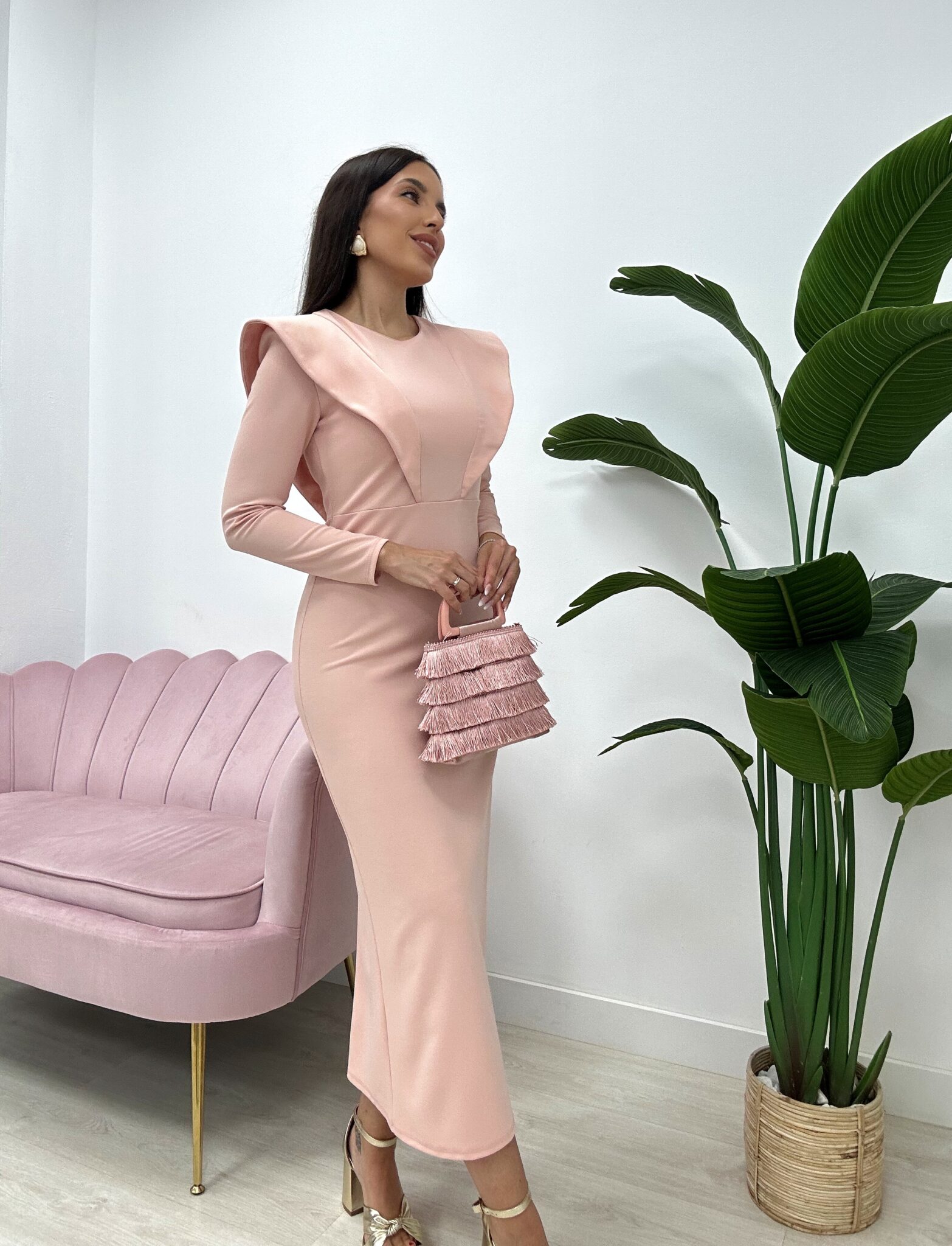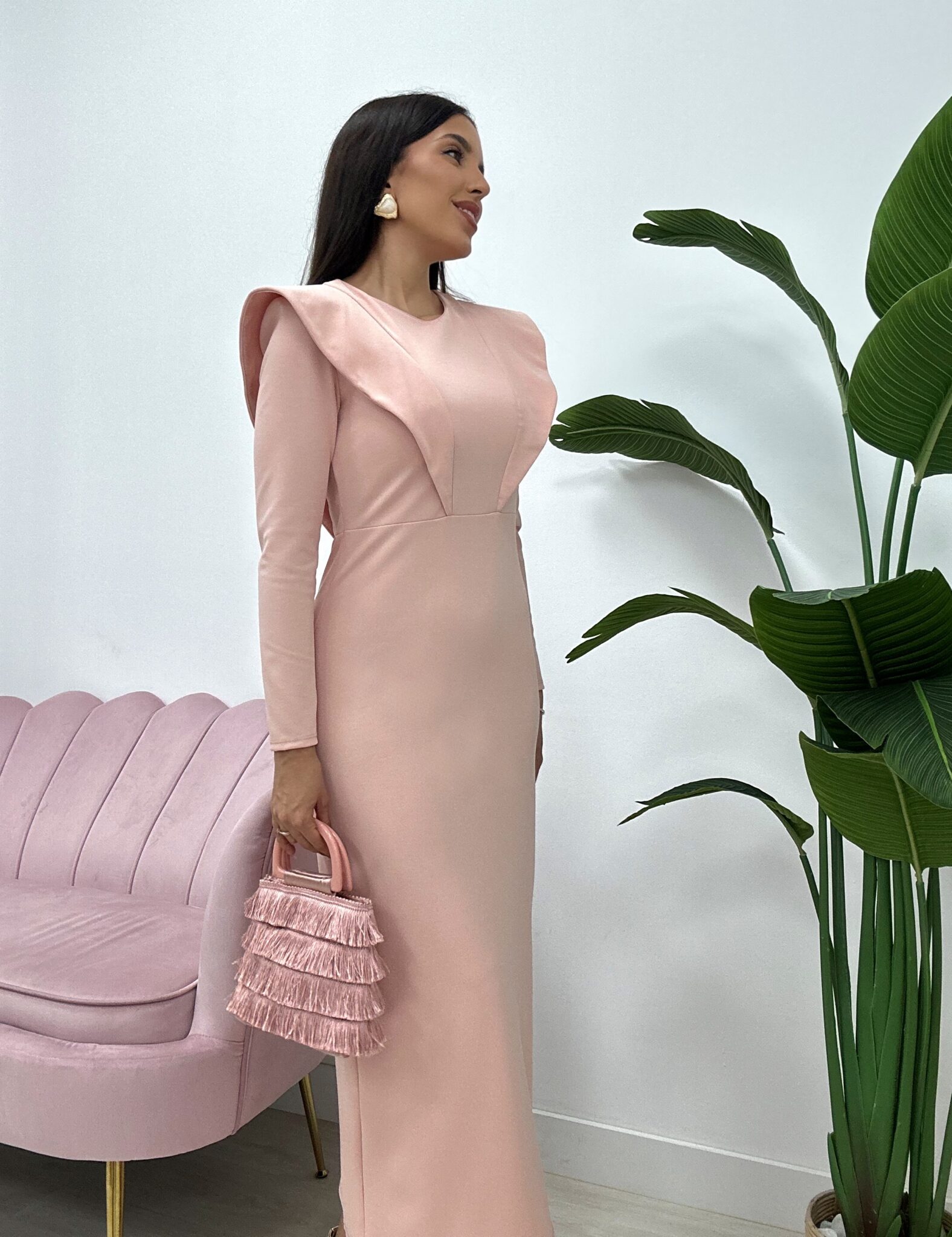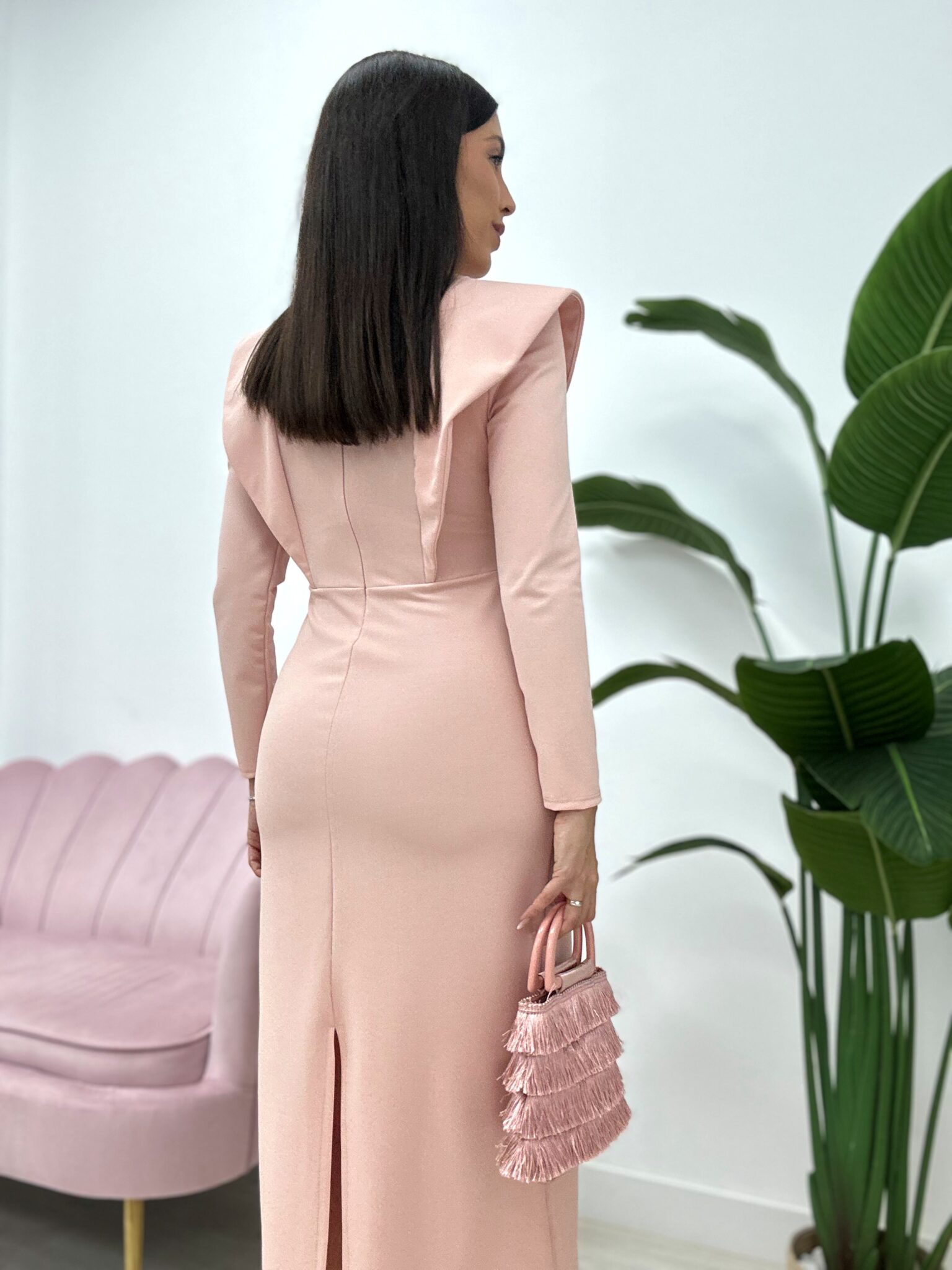 Talla única. Tejido crepé elástico, cierre con cremallera en la espalda