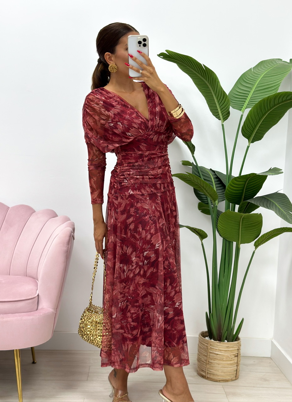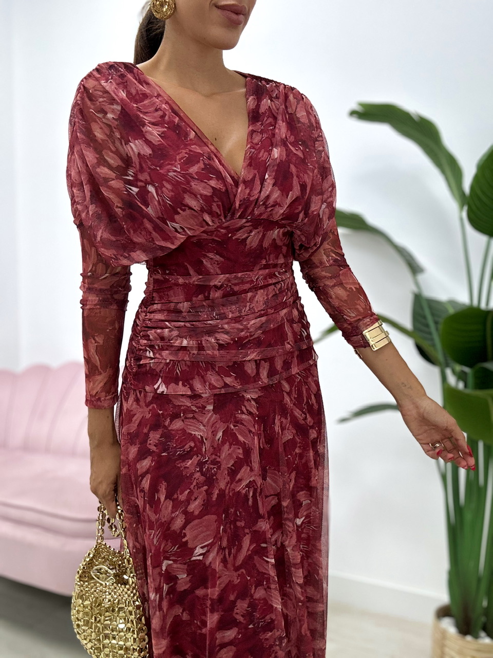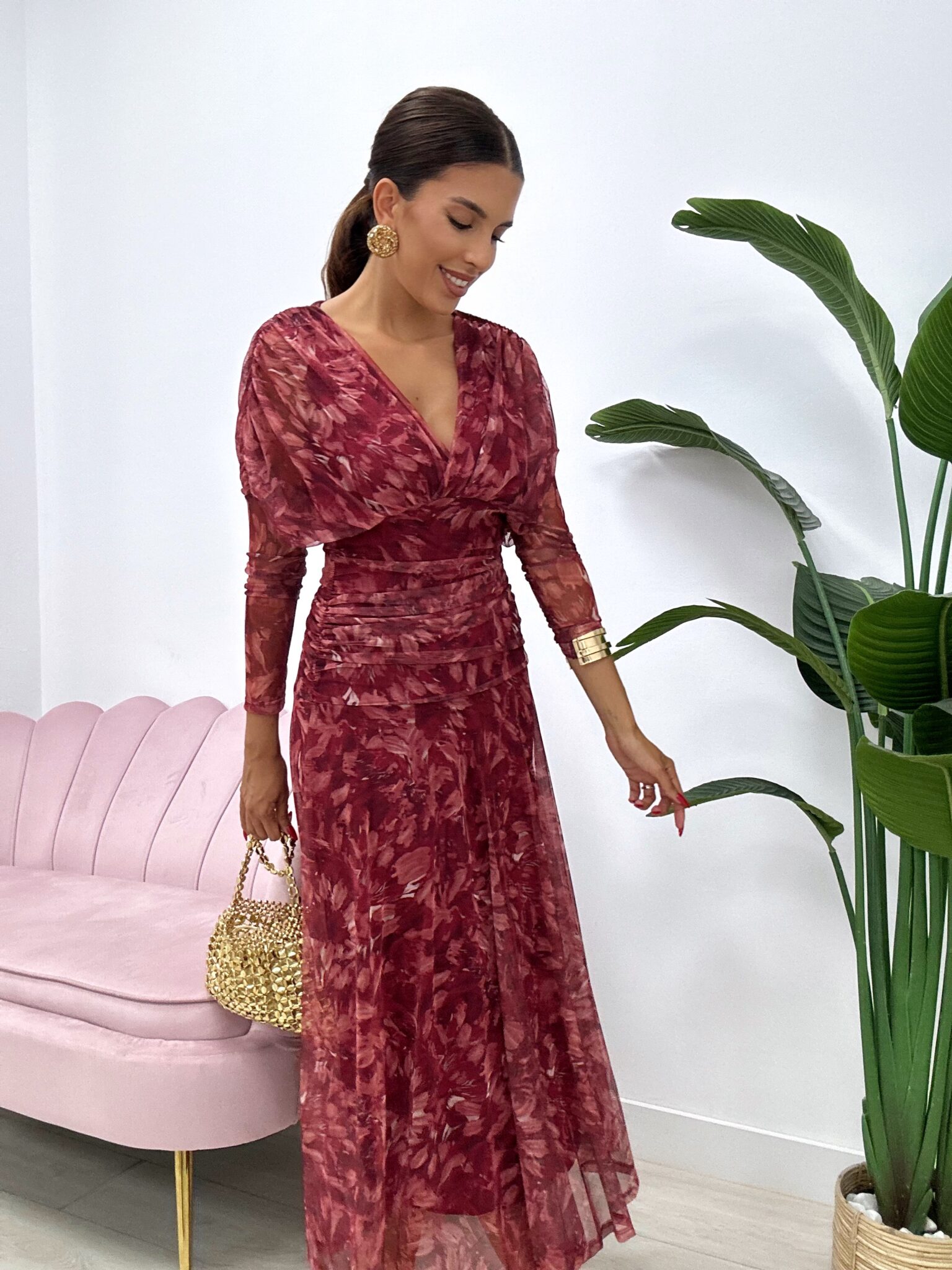 Tejido en tul estampado con forro interior. Lleva detalle de drapeado muy favorecedor en el abdomen.